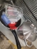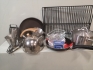 Diskställ, vattenkittel, matlådor i glas, krokar, sil, mått, springform , rivjärn, kastrull med mera