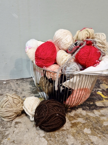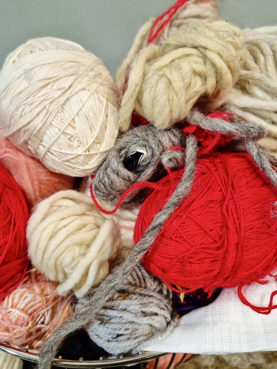 Tjockt ullgarn, tunt bomullsgarn med mera