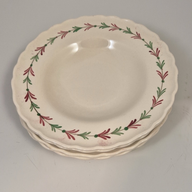 4st djupa tallrikar. Finns tillverkningsfel i glasyren . En har nagg . D.21cm