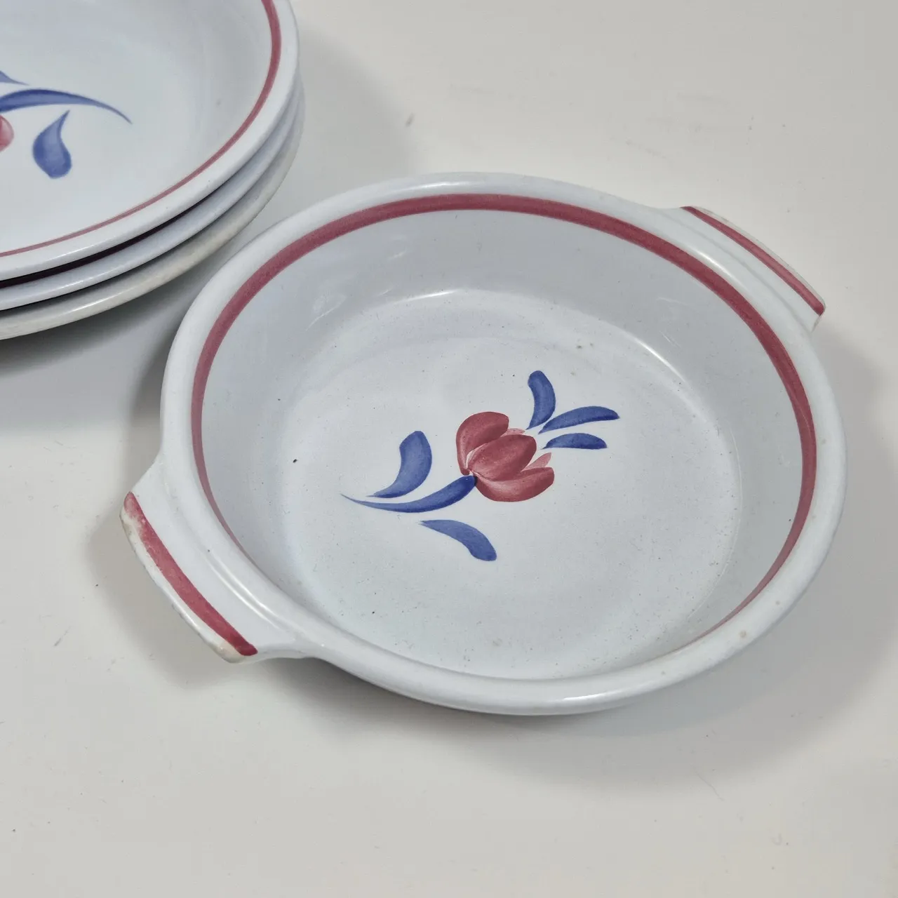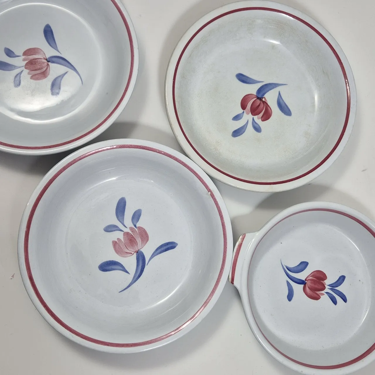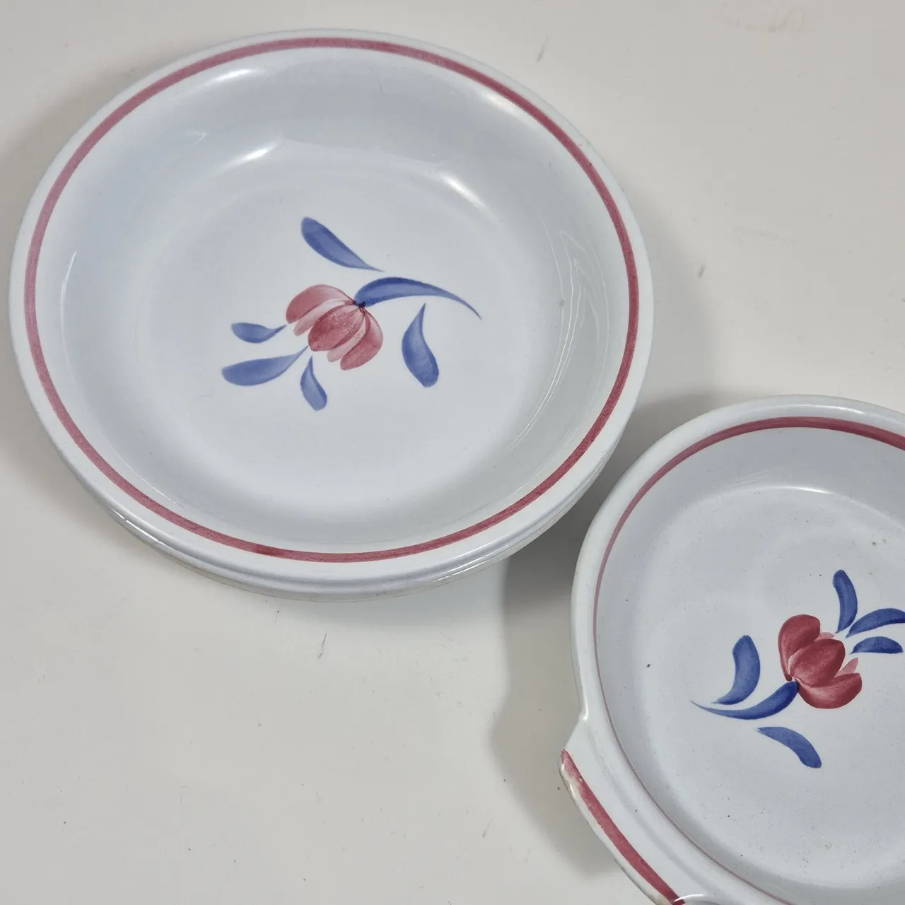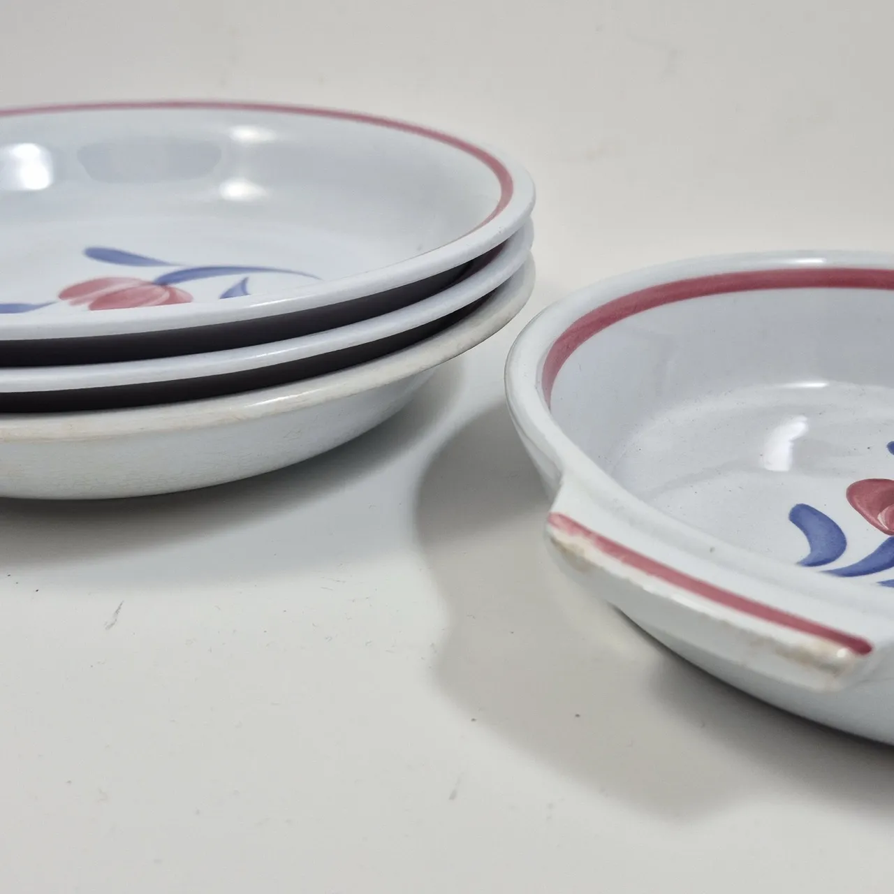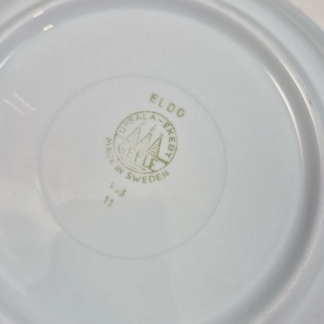 Gefle Eldo. 3st djupa tallrikar, 1st form . krackityr, missfärgningar