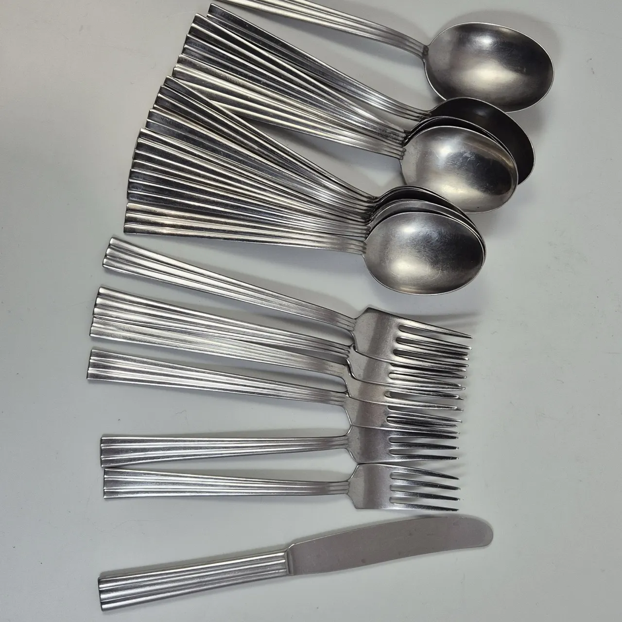 13+1 matskedar, 4+2 gafflar, 1st kniv