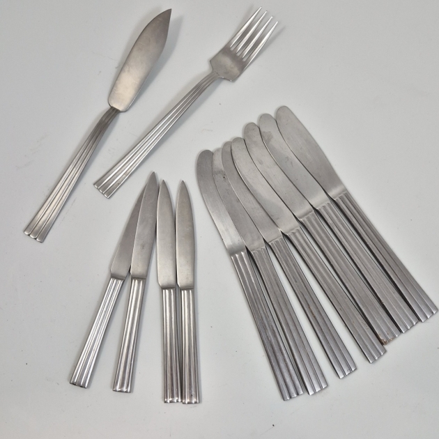 1st gaffel, 4 fruktkniv, 1 fiskkniv, 7 matknivar