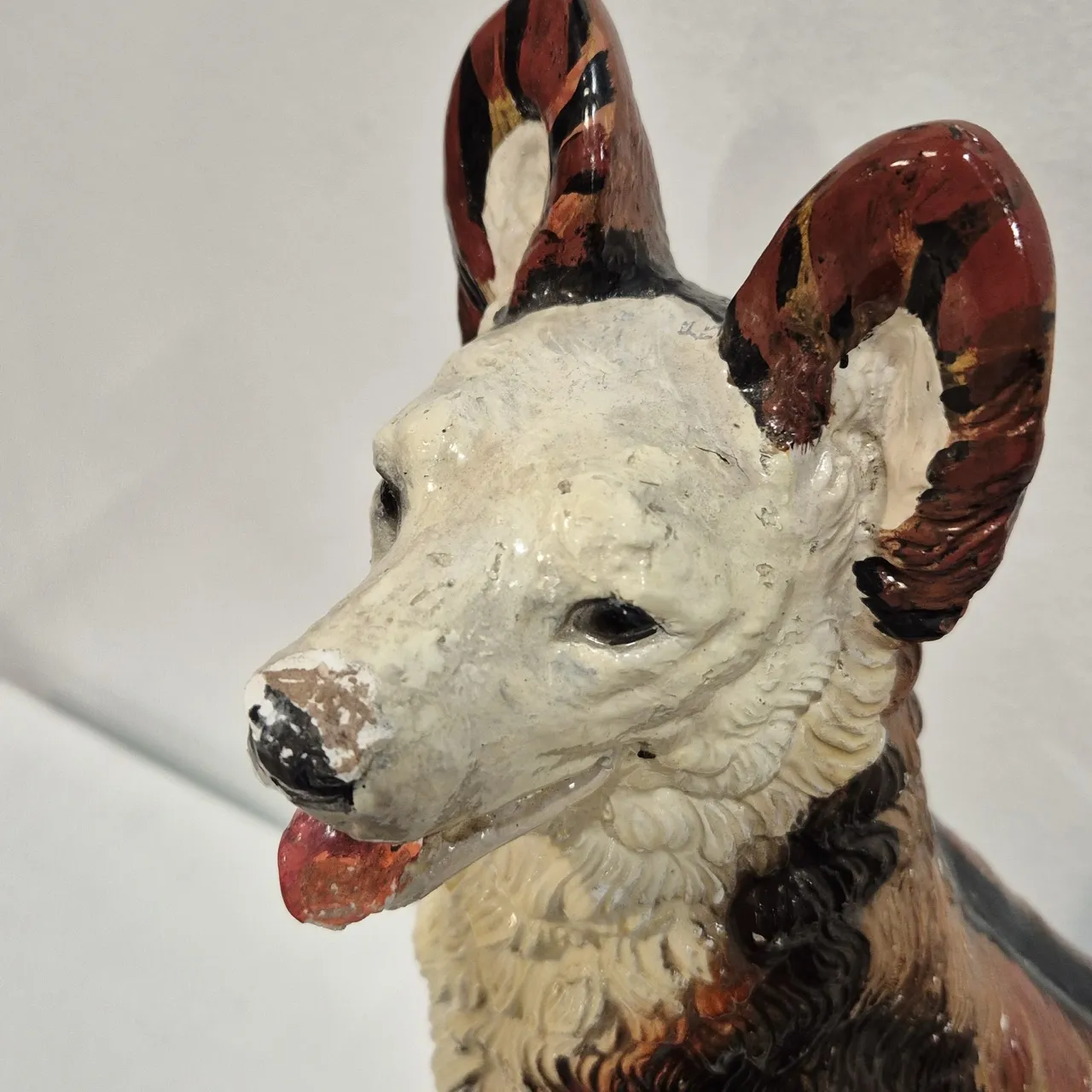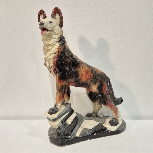 Stor gipsfigurin, lite skav på nosen och här och var. H.51cm