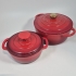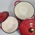 2st emaljerade gjutjärnsgrytor. Den största D.22cm . Den lilla har nagg på handtagen