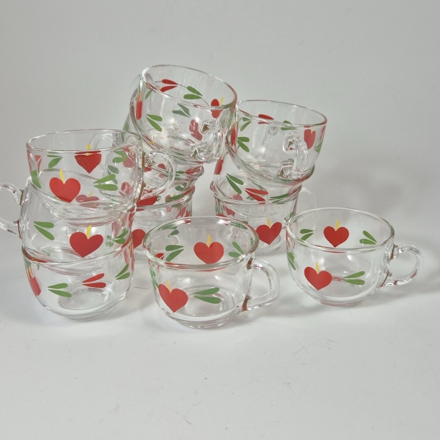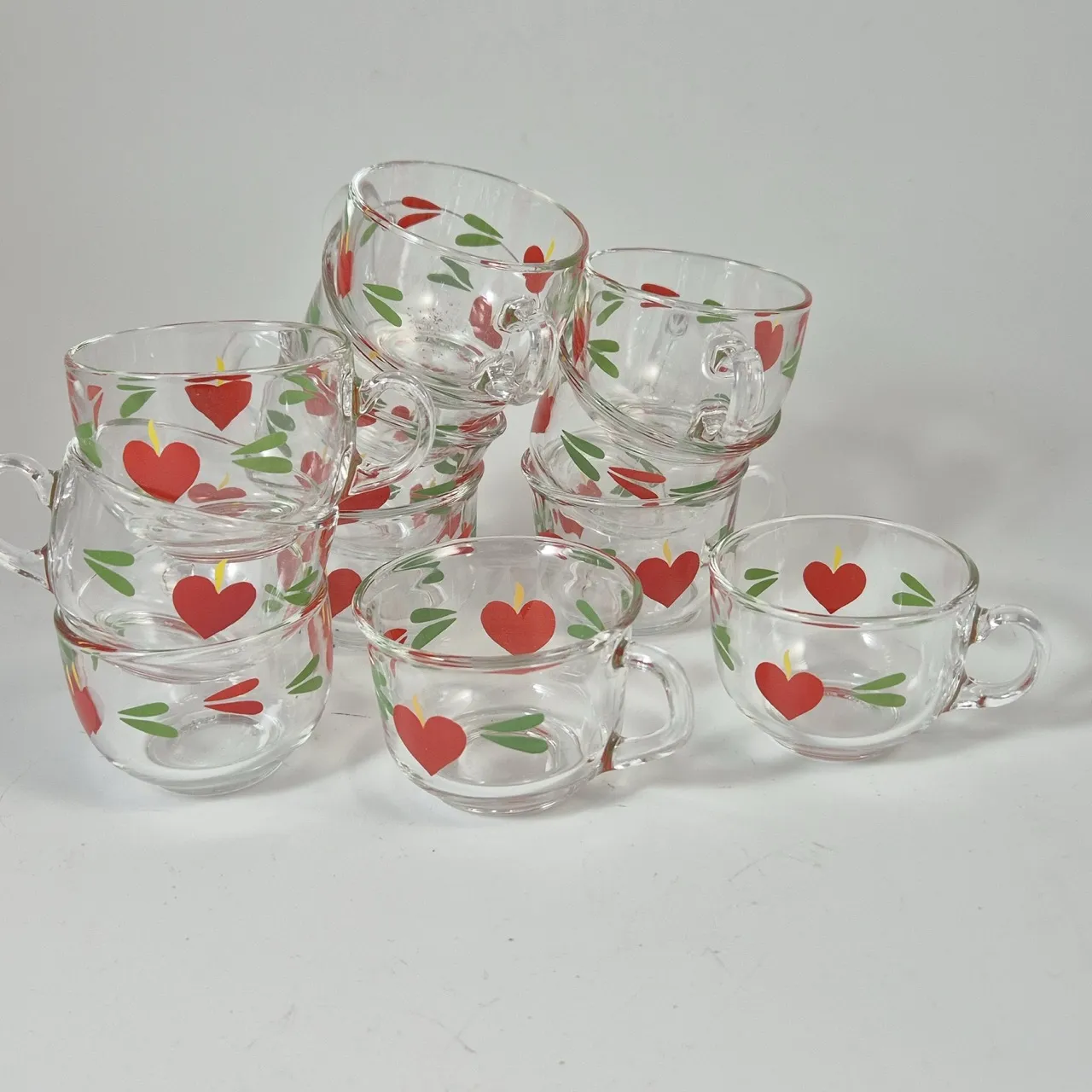 6+6st (2 olika modeller, samma dekor)  glöggmuggar i glas .
