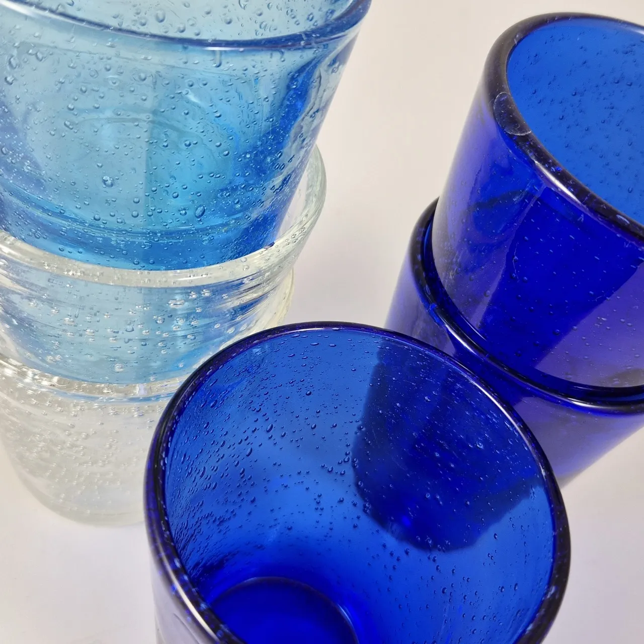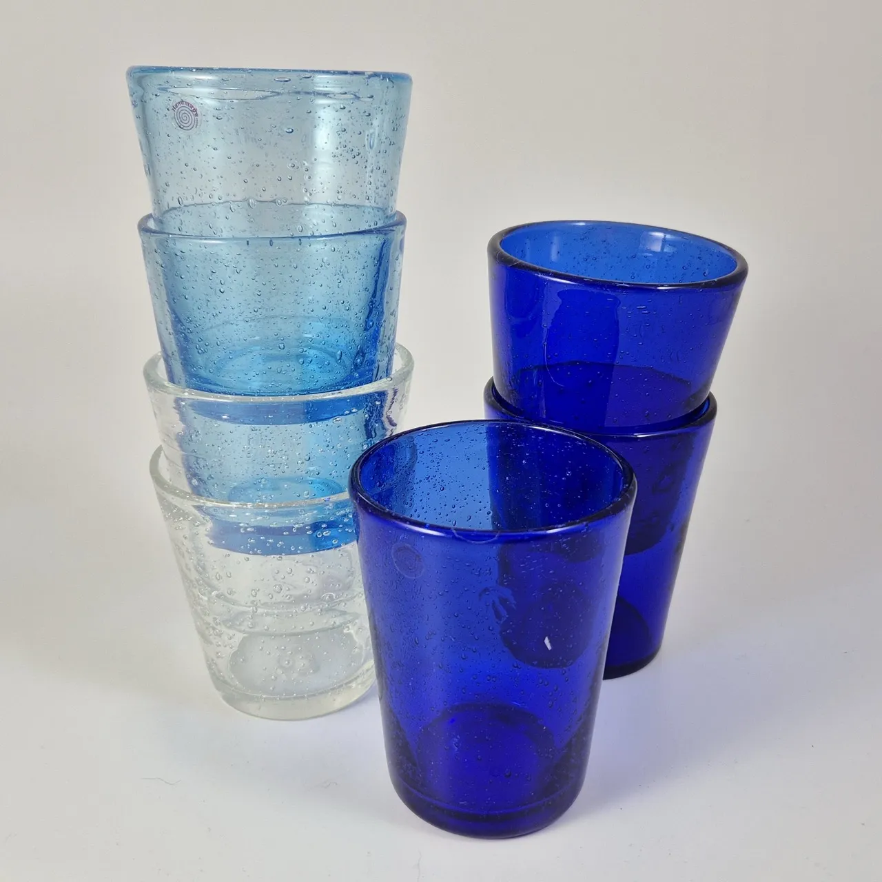 Glas i olika färger med bubblor. 3 olika sorter , 7st ,Högsta H. 10cm