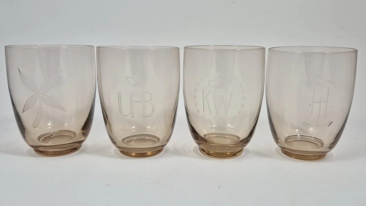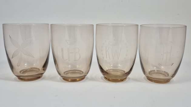 4st större glas med slipad dekor. Alla har olika . H. ca 11cm