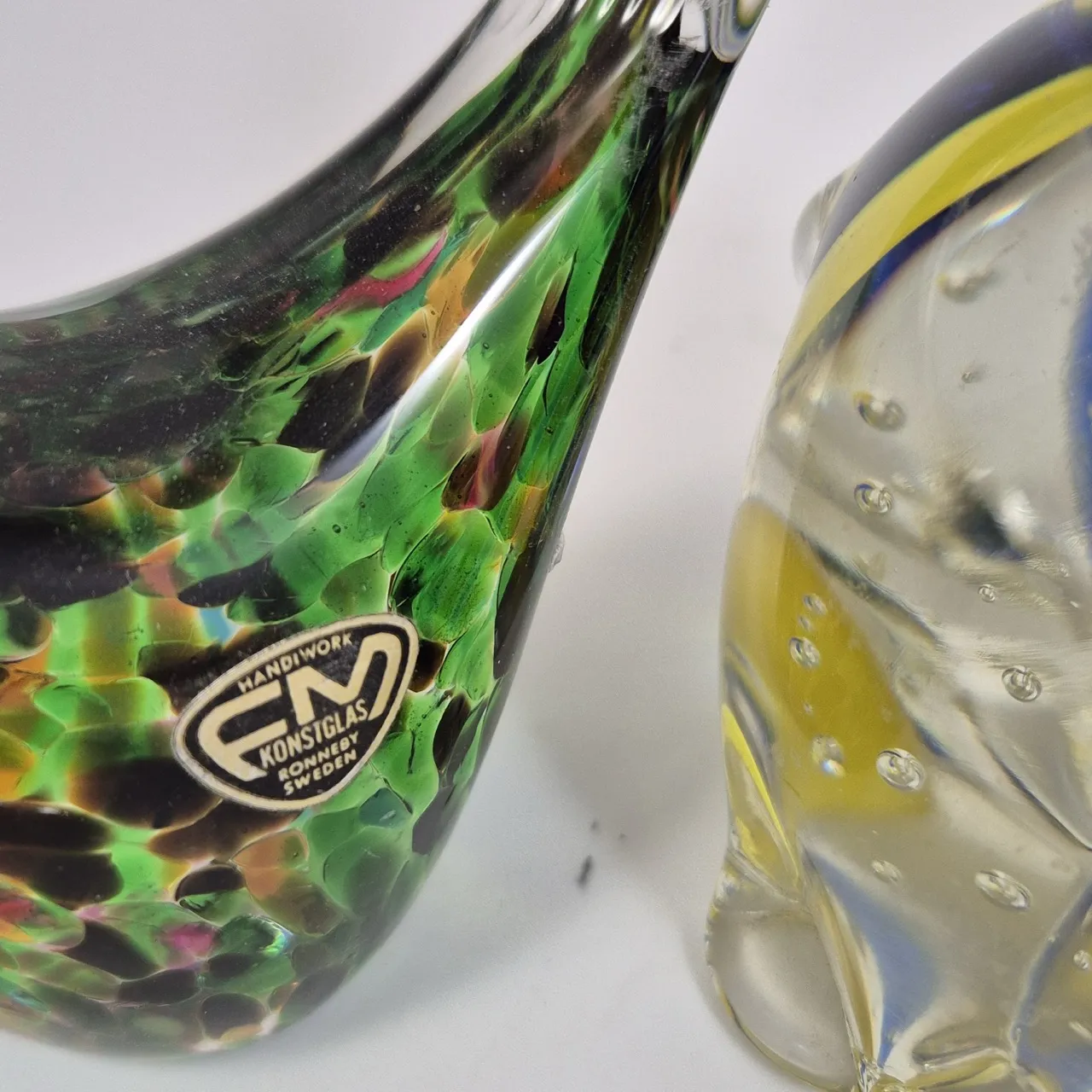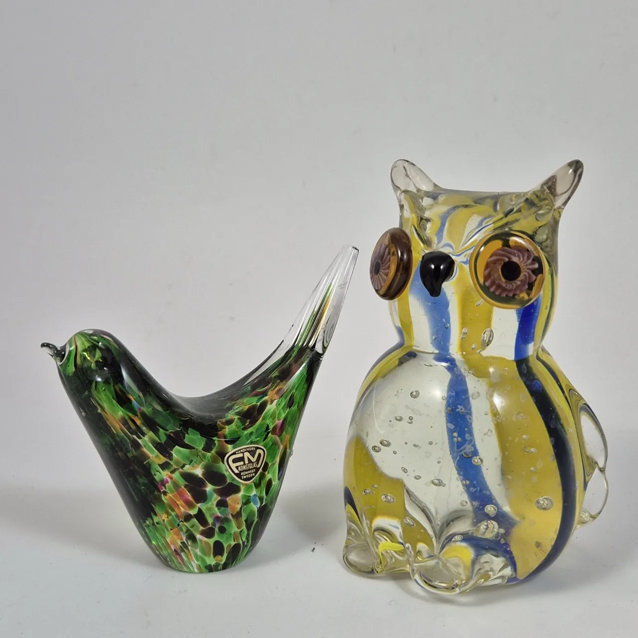 Grön fågel Ronneby , uggla H.13.5cm