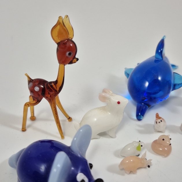 Små urgulliga glasdjur . Högsta 7cm . Minsta 1cm