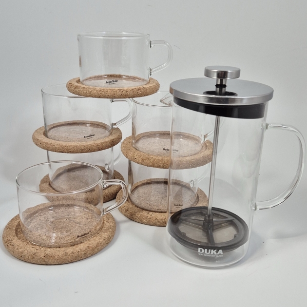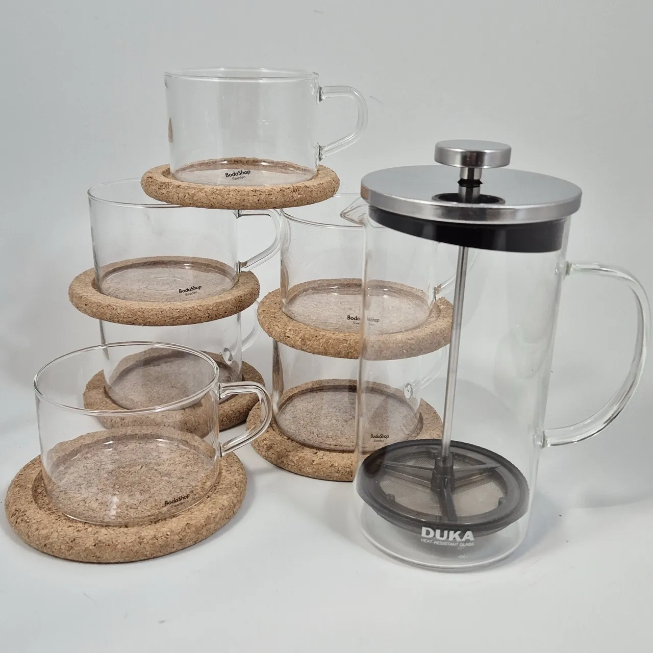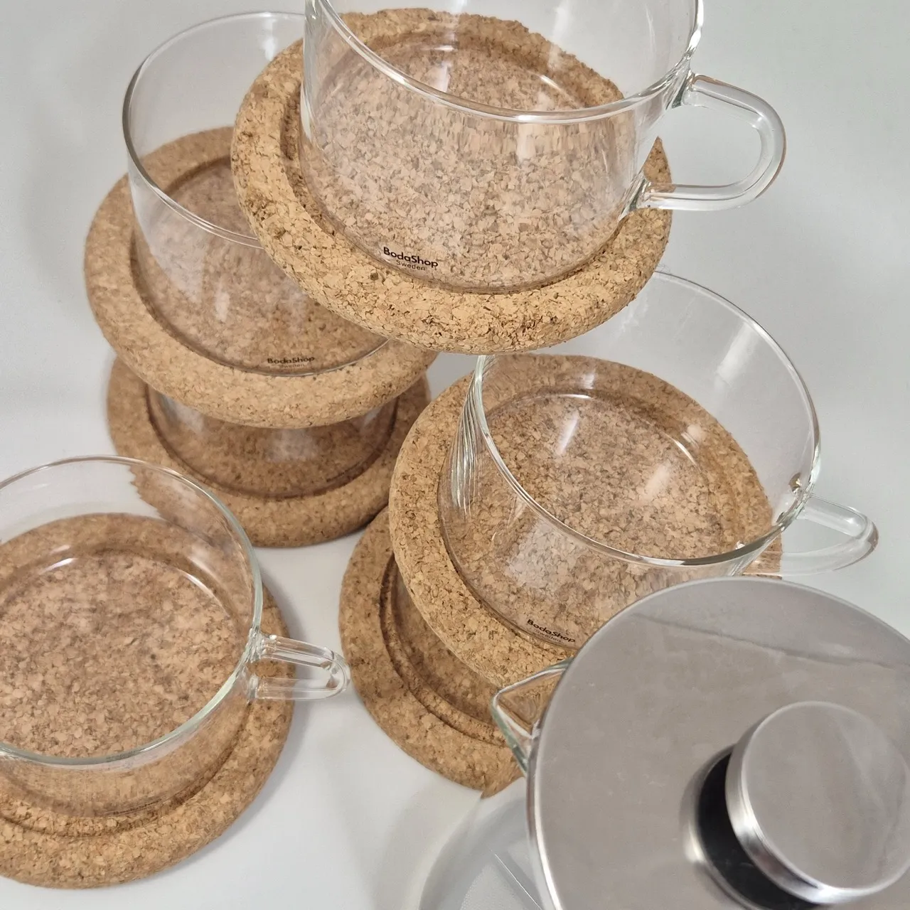 6st Glaskoppar med korkfat Boda. D.9.5cm .