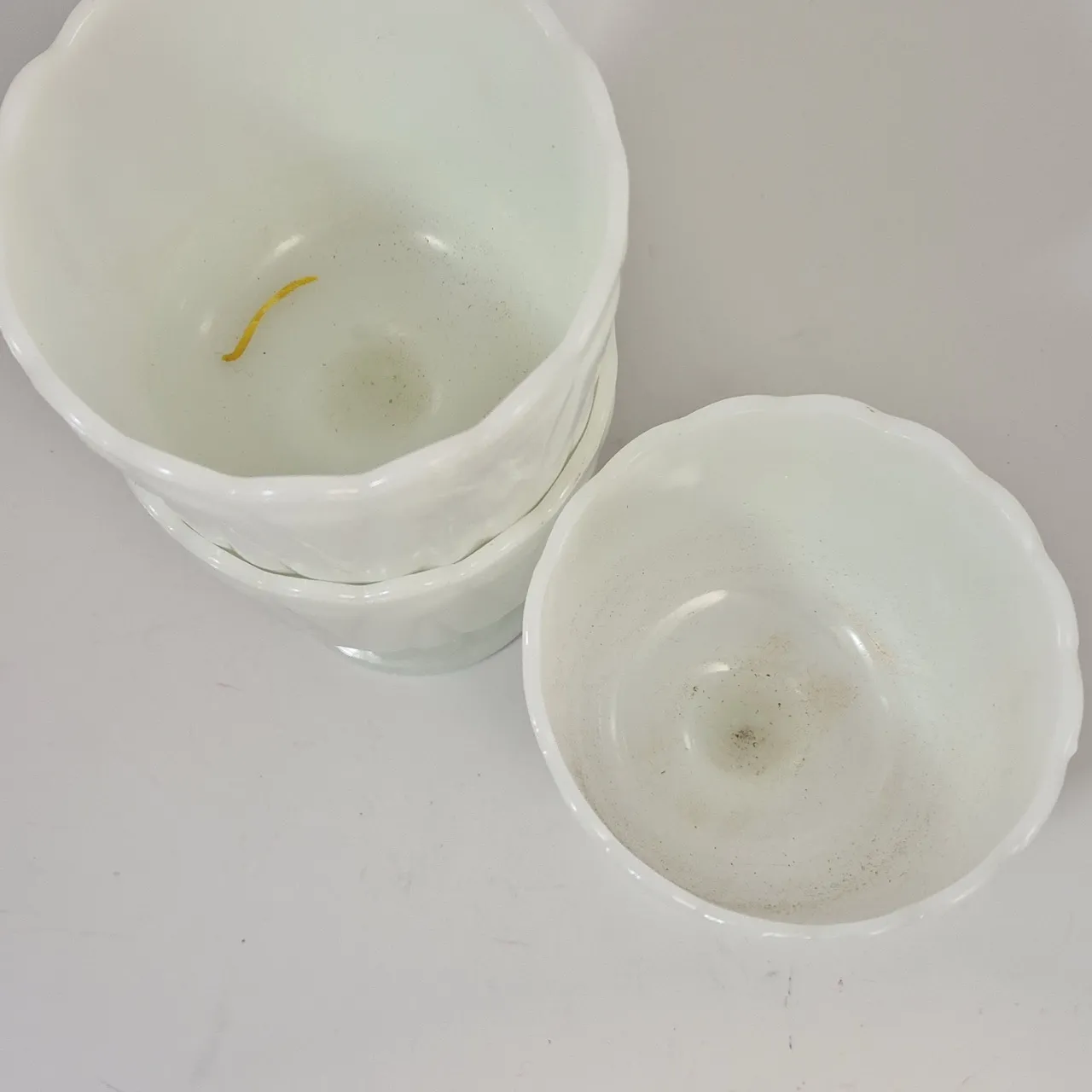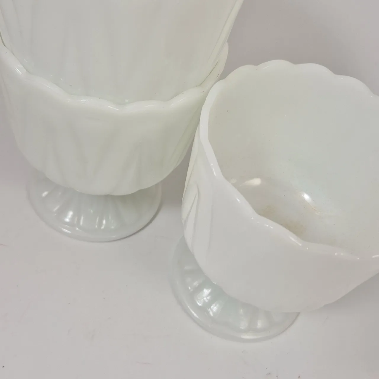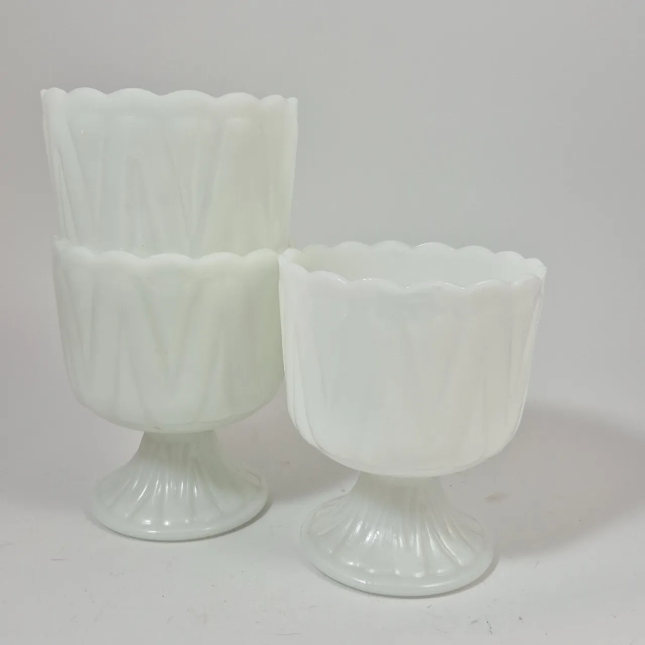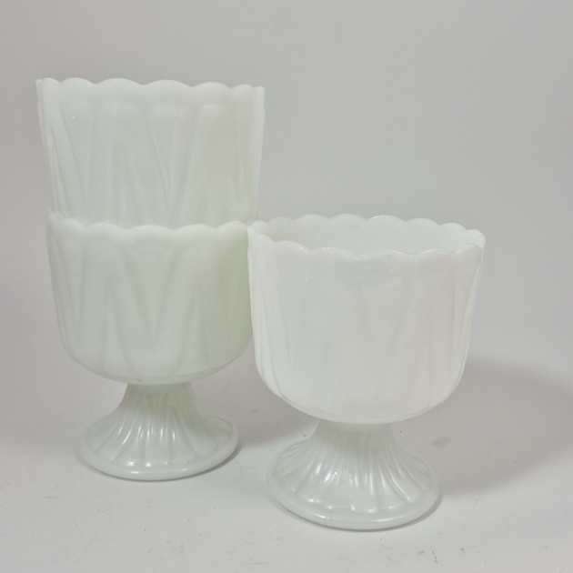 3st pressglaskrukor på fot . D.12cm