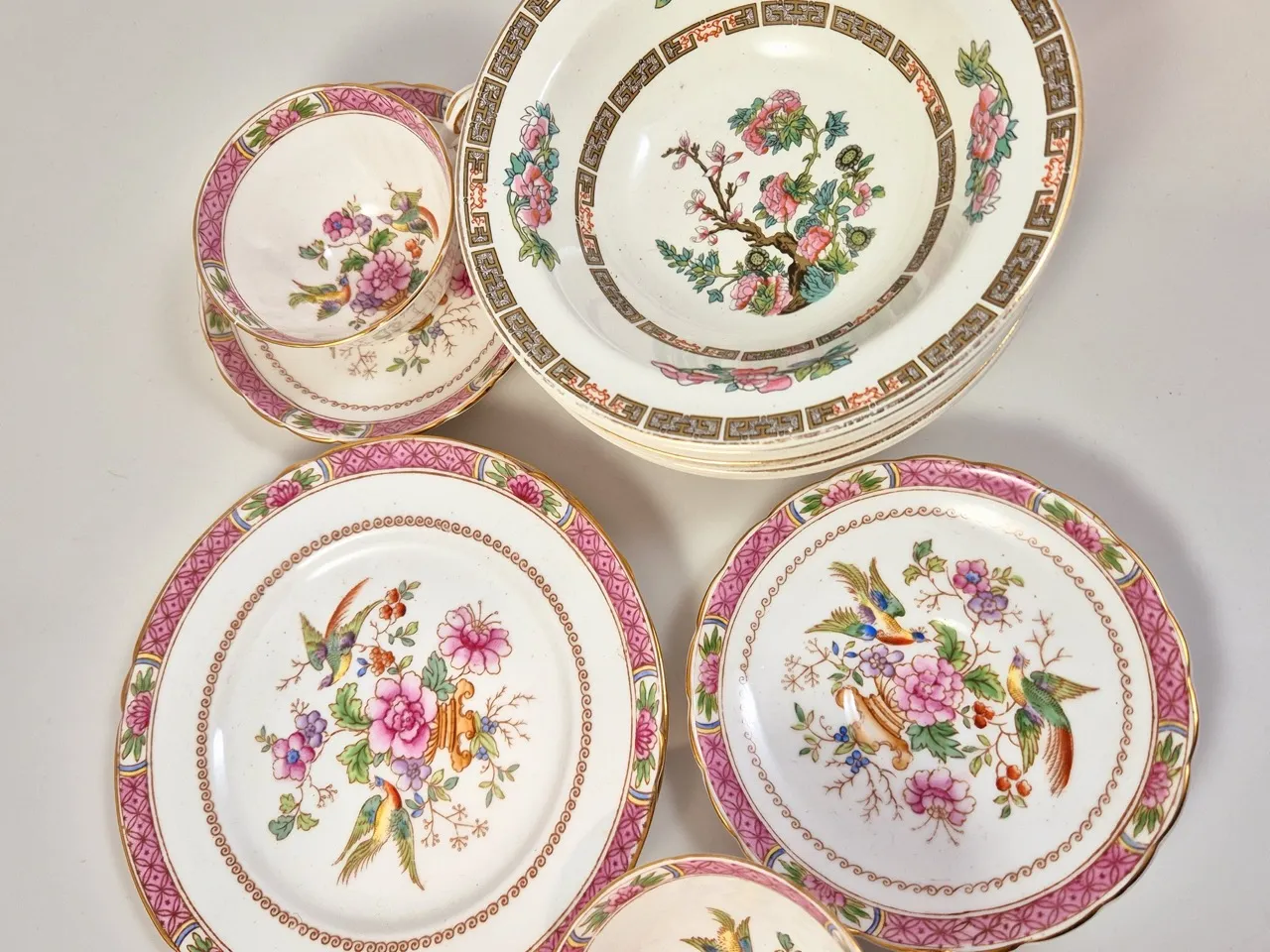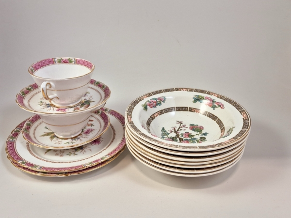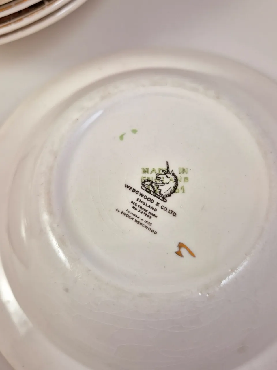 7st Glass och paj djupa tallrikar, krackityr. ett stort nagg på undersidan. Wedgwood & co