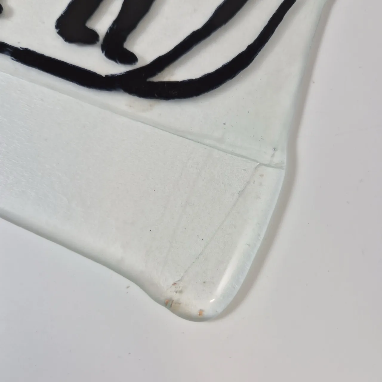 Glastavla från Sven Lindholm . Oklart hur den ska kunna hängas upp. 26x29cm