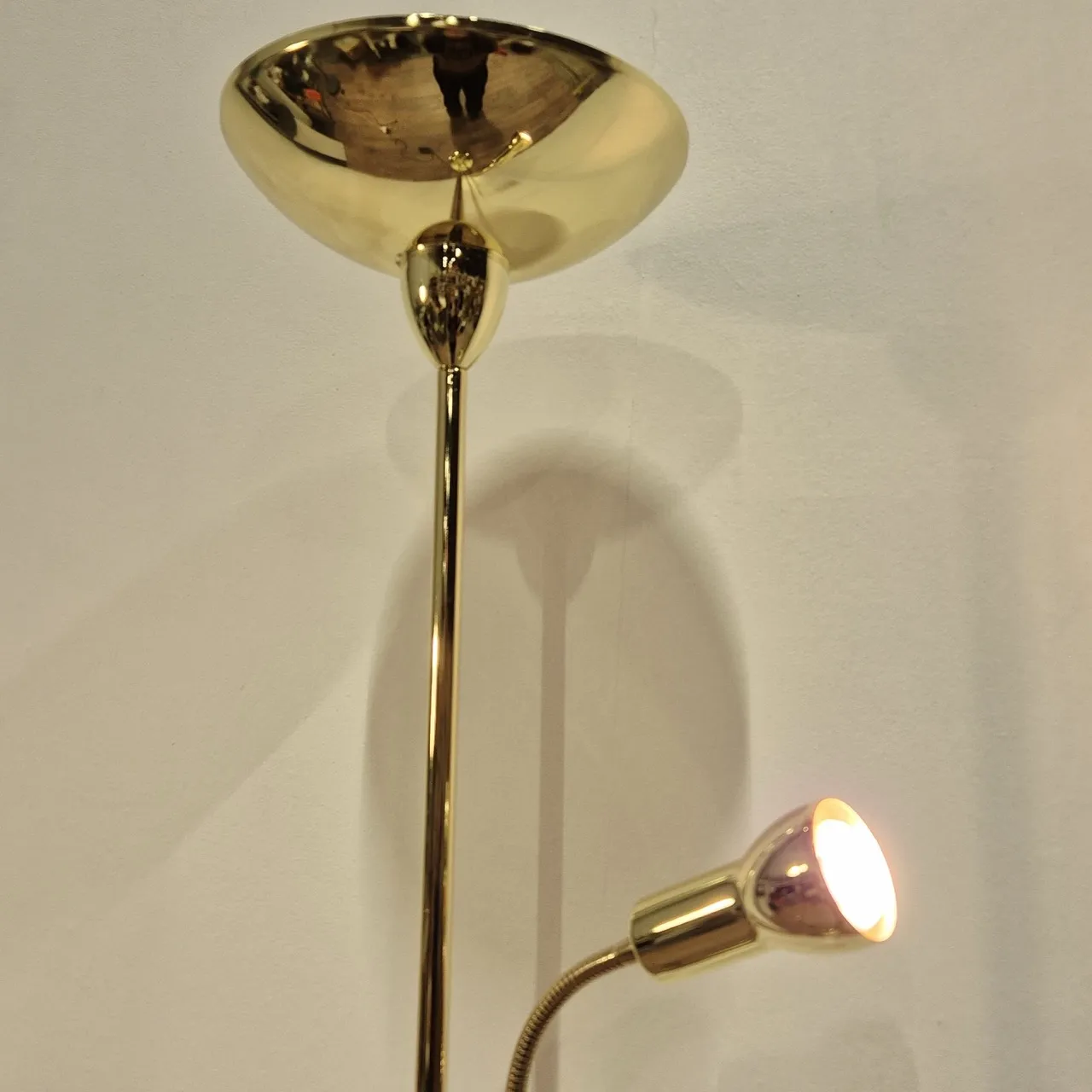 Golvlampa, guldig. H. 183cm