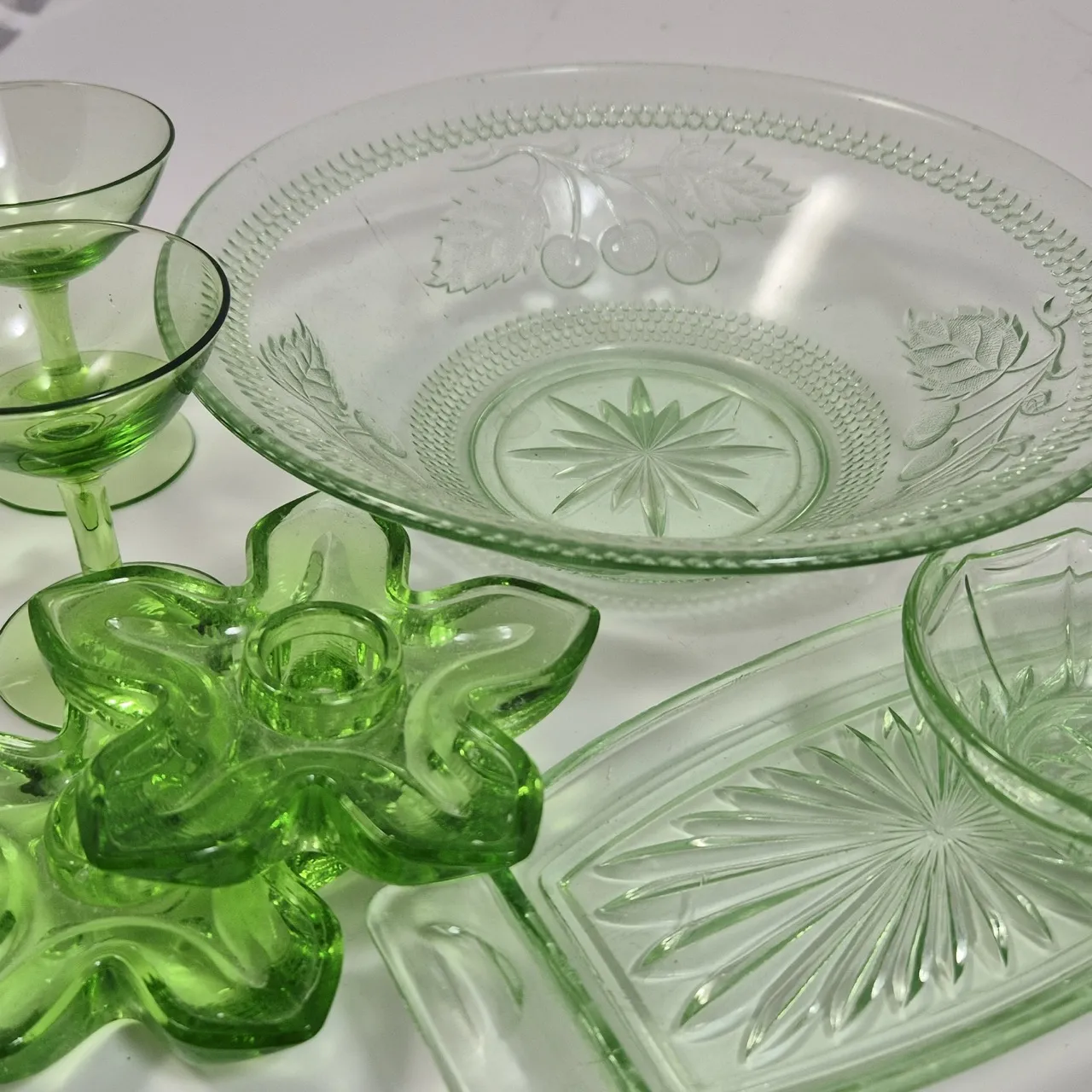 3st likörglas, 2st ljusstakar, skål D.21cm , fat