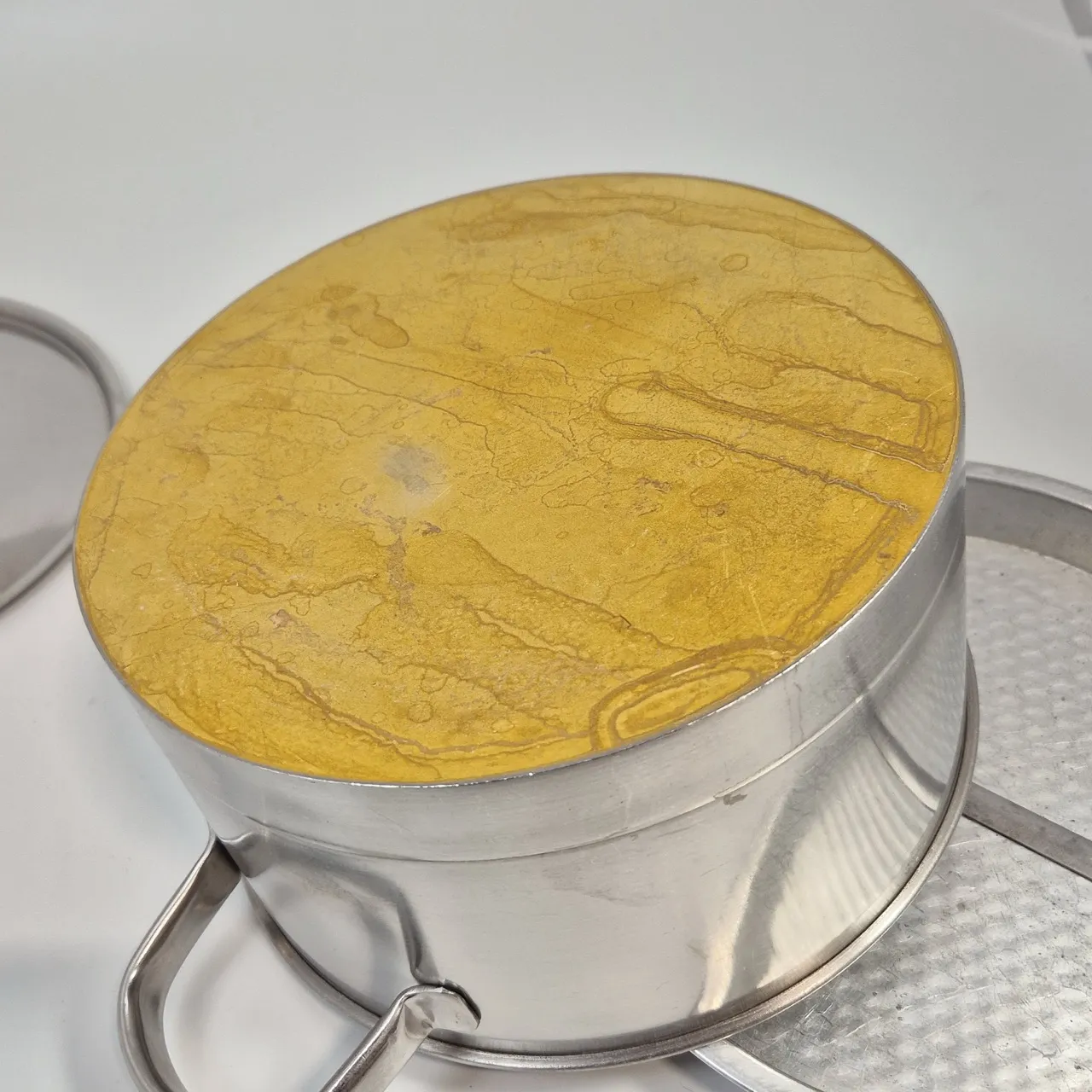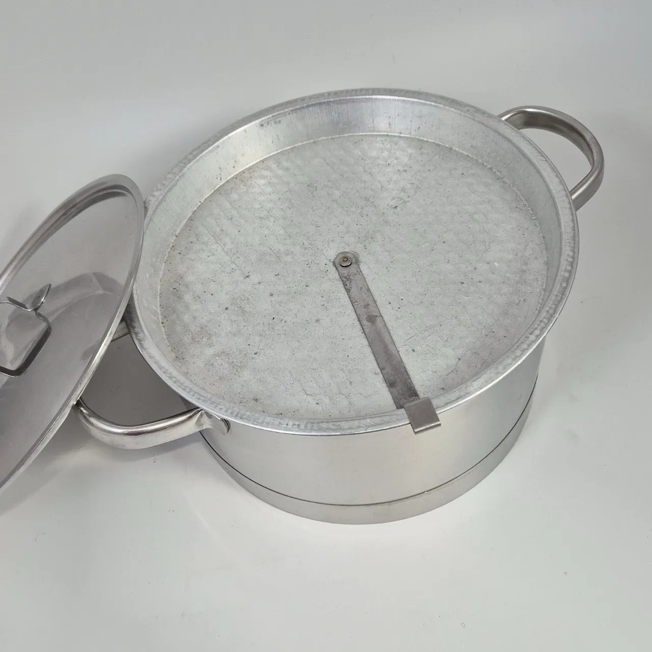 Gryta olofström. Väldigt tung med någon insats som vi inte riktigt vet vad den är till. Ej induktion .D.22cm