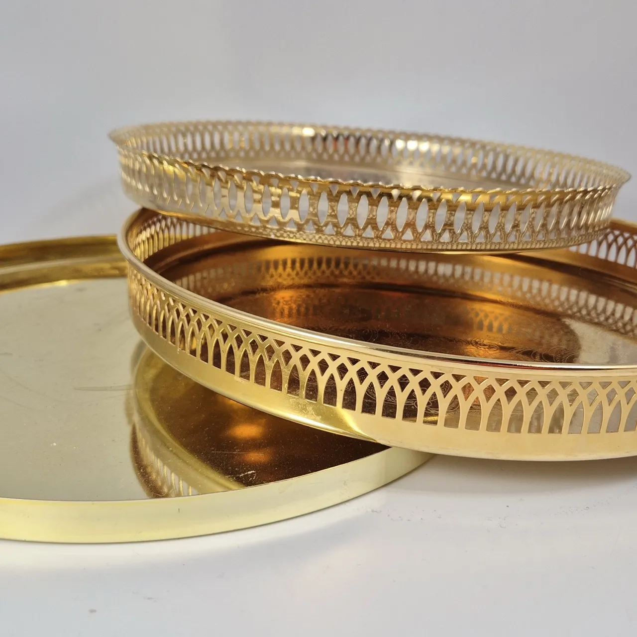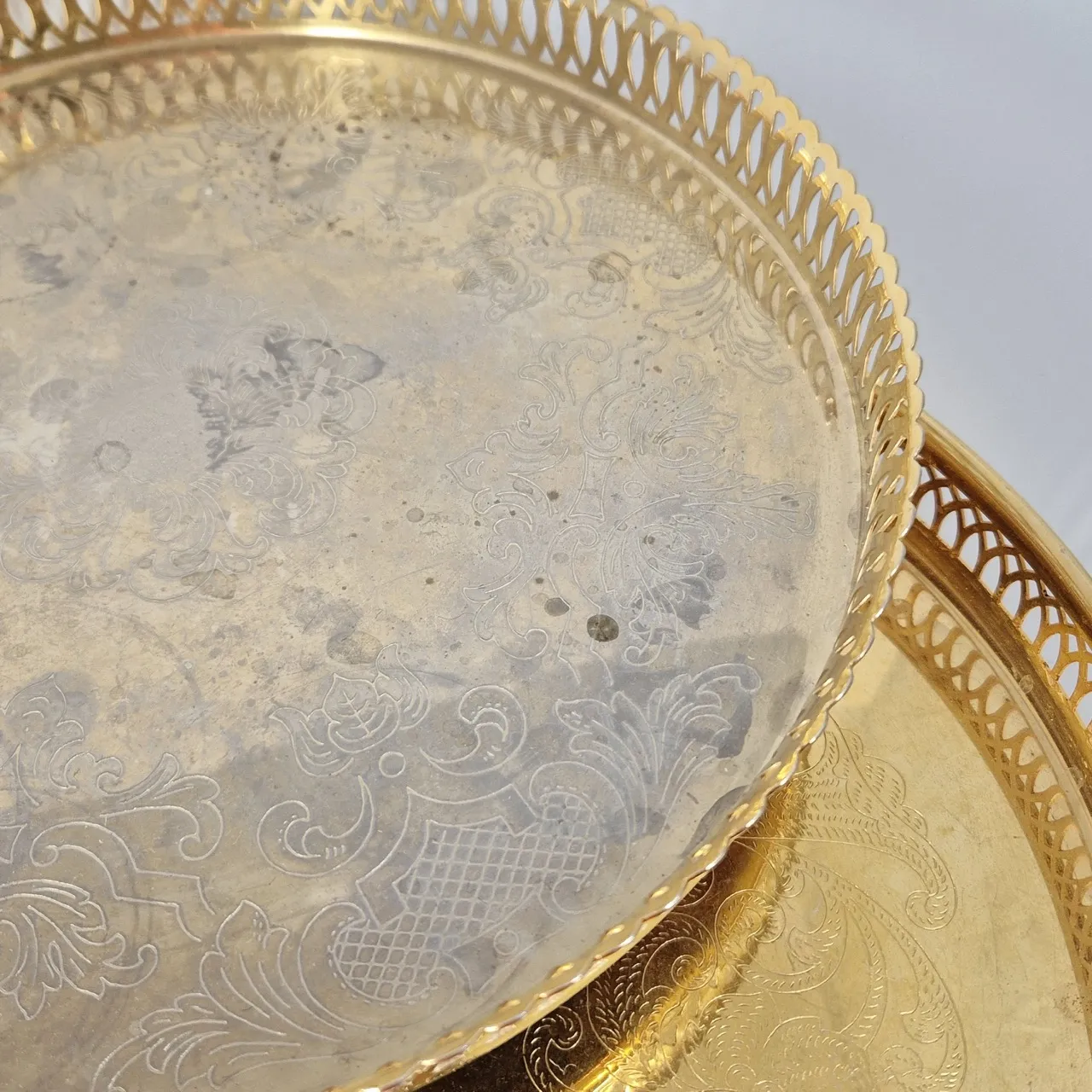 Den guldpläterade har skav D.30cm