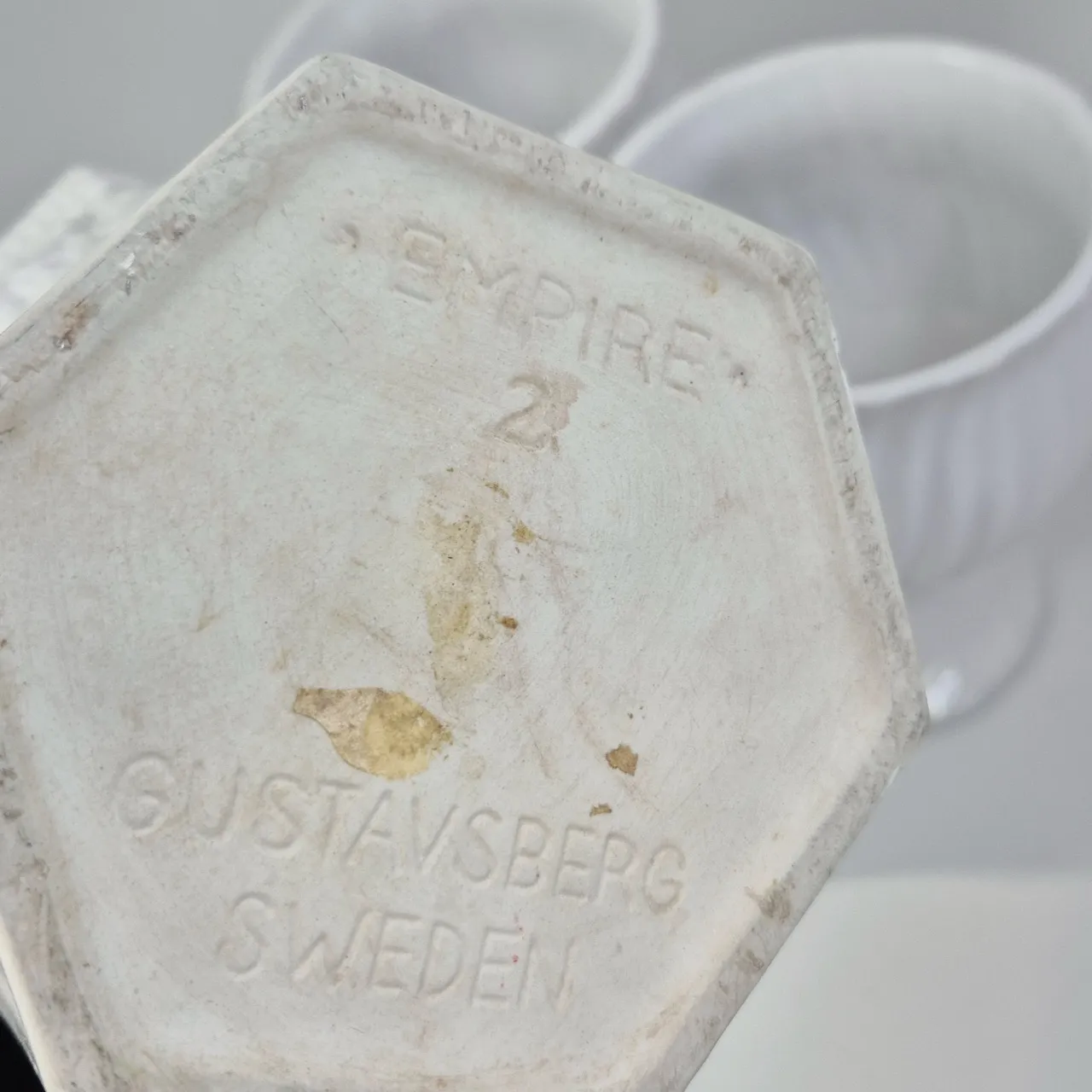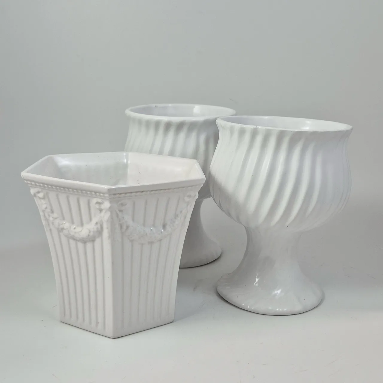 Gustavsberg Empir Nr 2 H.14cm . 2st krukor på fot.