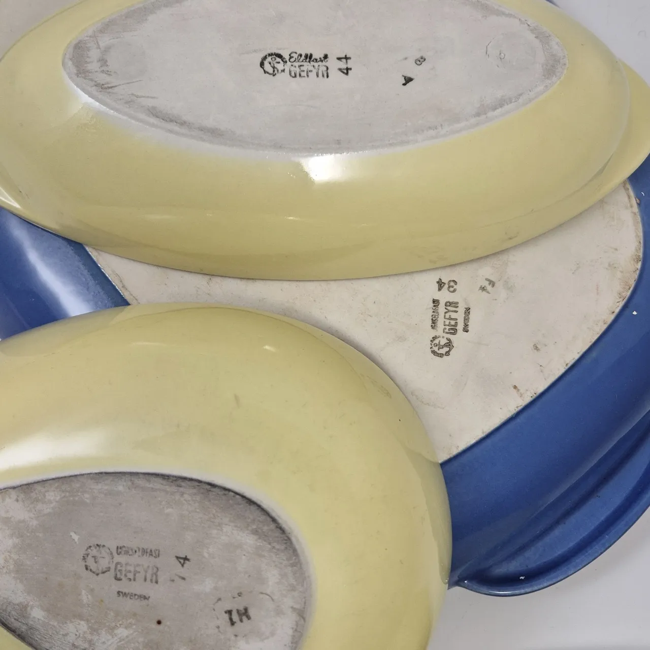 Gustavsberg Gefyr, Ugnsform ca 40x28.5cm , form med lock, skål (har nagg och sliten kant)