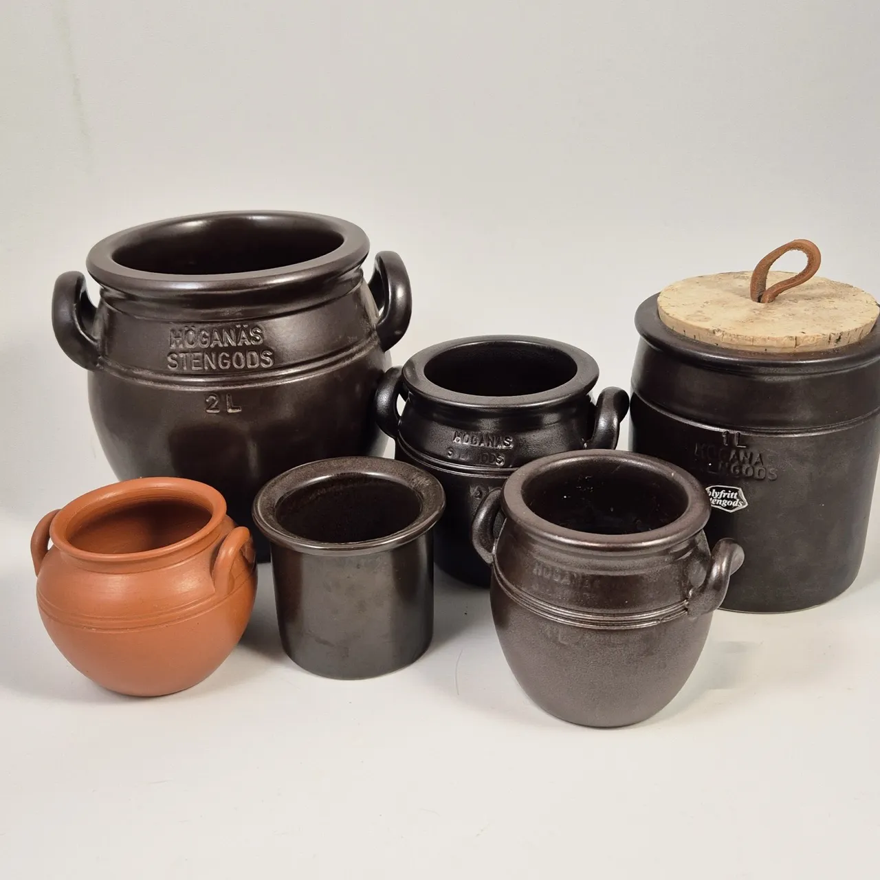 Höganäs krukor Största är 2liter , burk med korklock 1liter