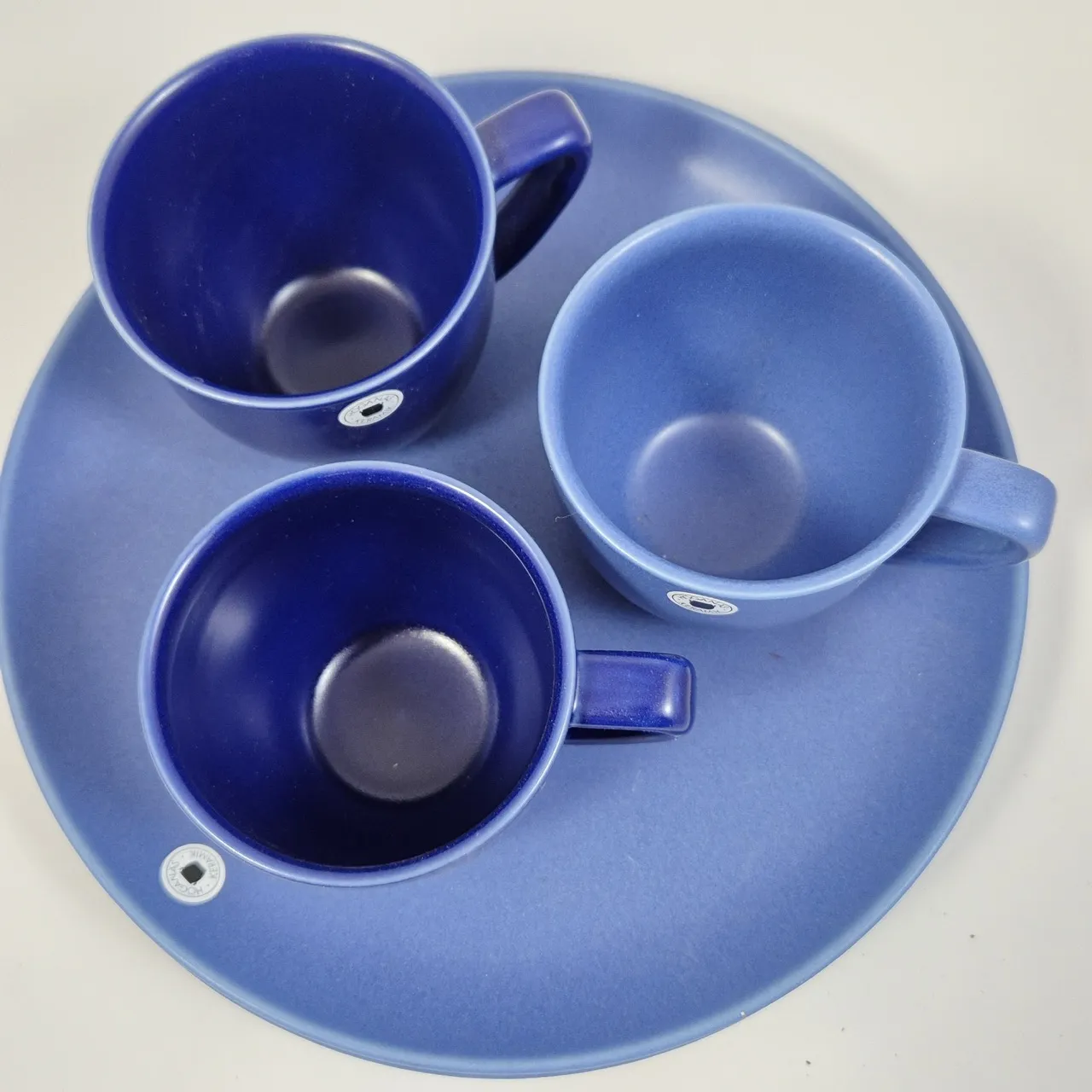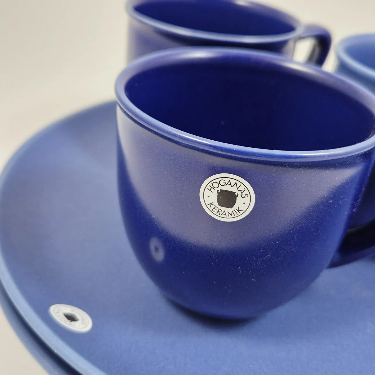 2st mattallrikar , 3st kaffemuggar en är lite ljusare färg . Fint skick