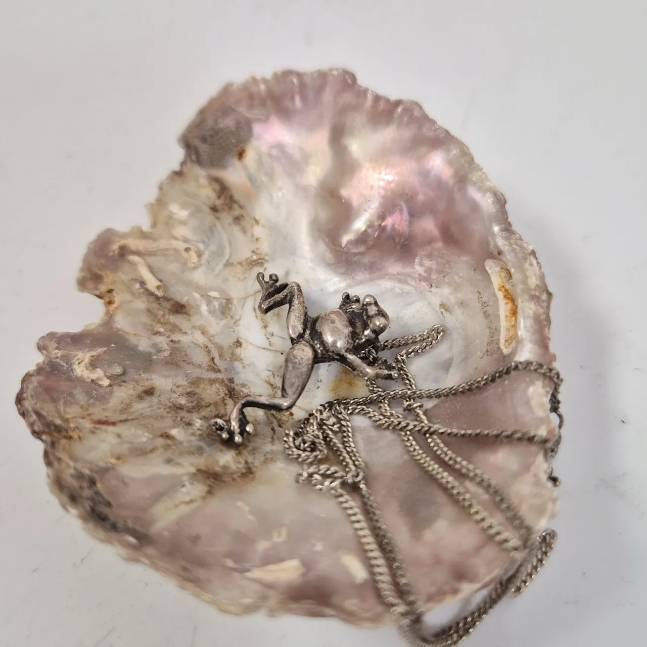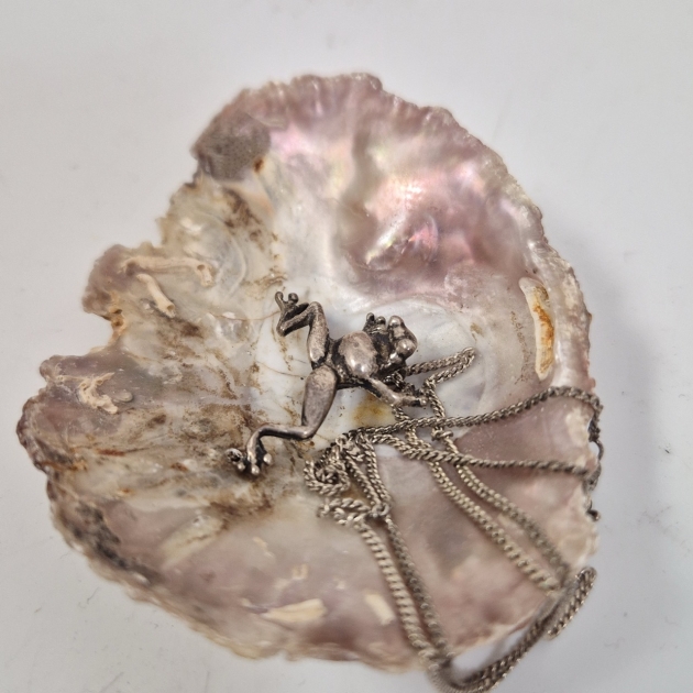 Halsband med groda i silver. Höjd på grodan ca 2cm