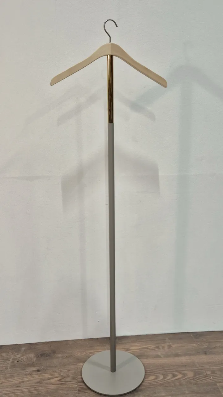 Herrbetjänt med metallfot, känns stabil. H. ca 155cm