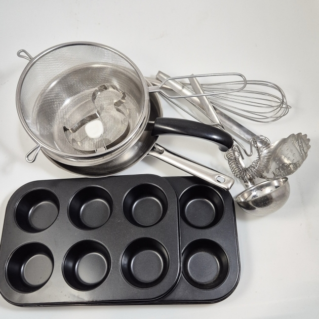 Vispar, muffinsformar, sil, 2st små stekpannor (fungerar inte på induktion)
