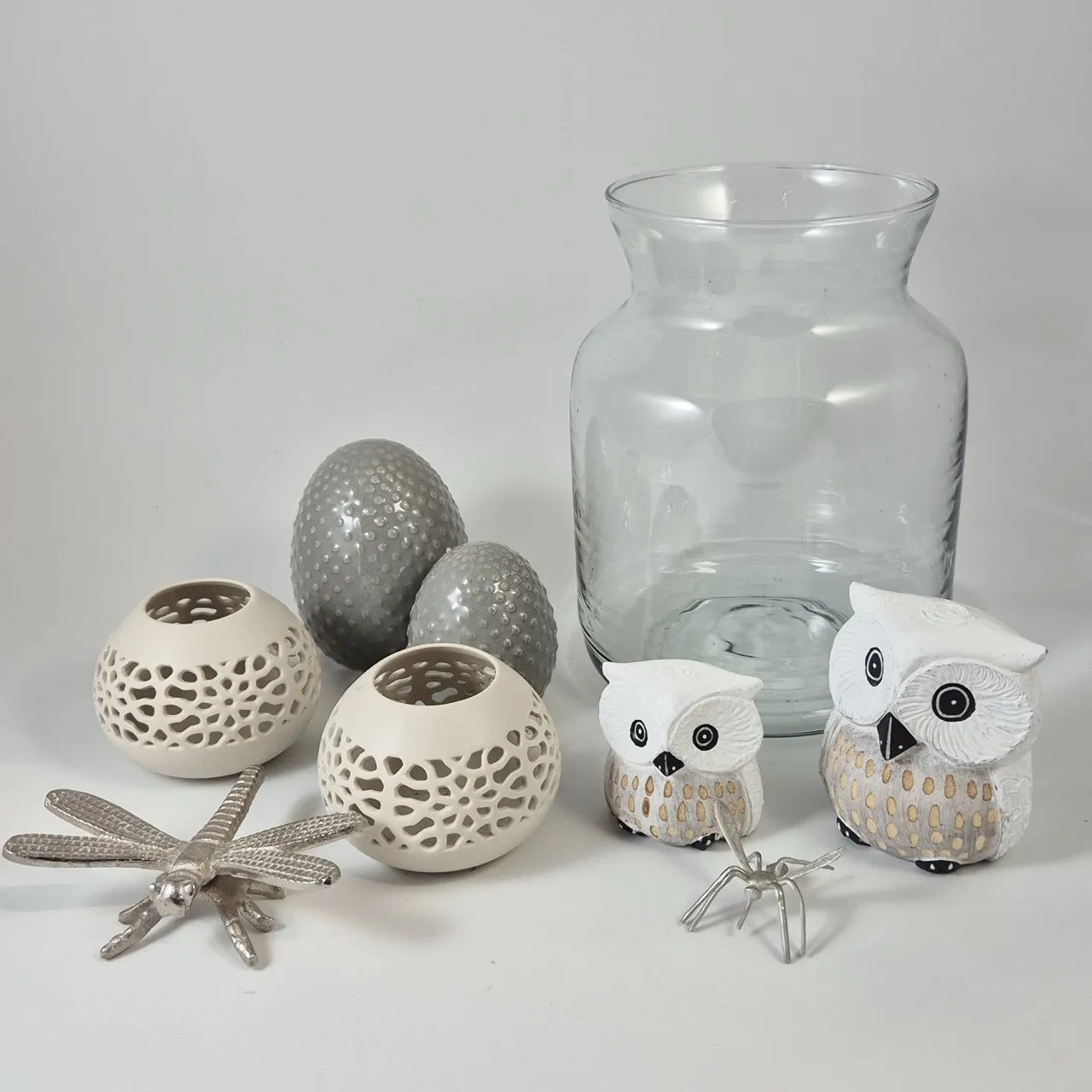 Ugglor, porslinsägg, med mera