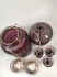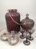 Ljuslykta(H.24.5cm) , lockask , 2st små ljuslyktor, 3st likörglas med metalldetaljer