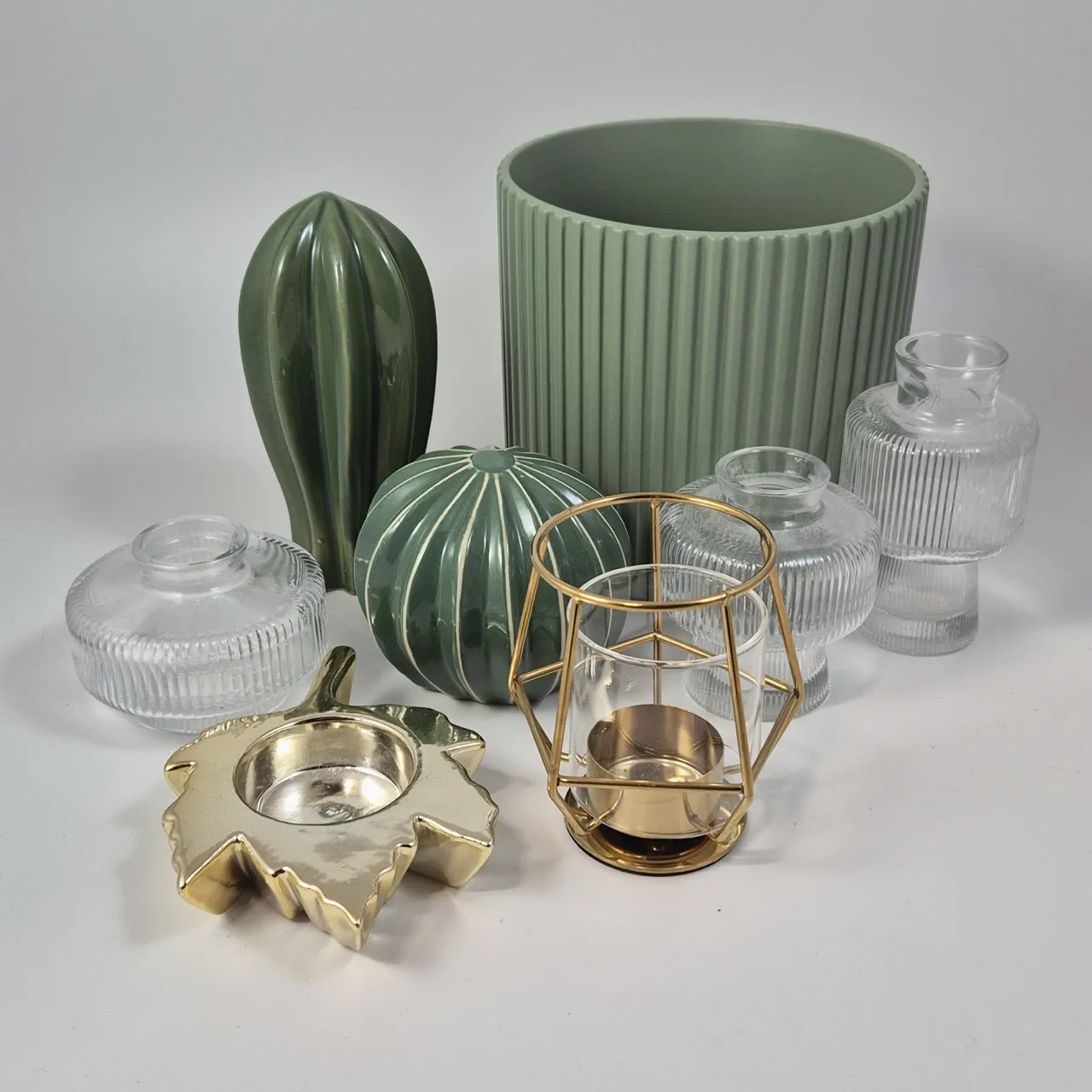 Kruka D.17cm , porslinskaktusar, ljuslyktor