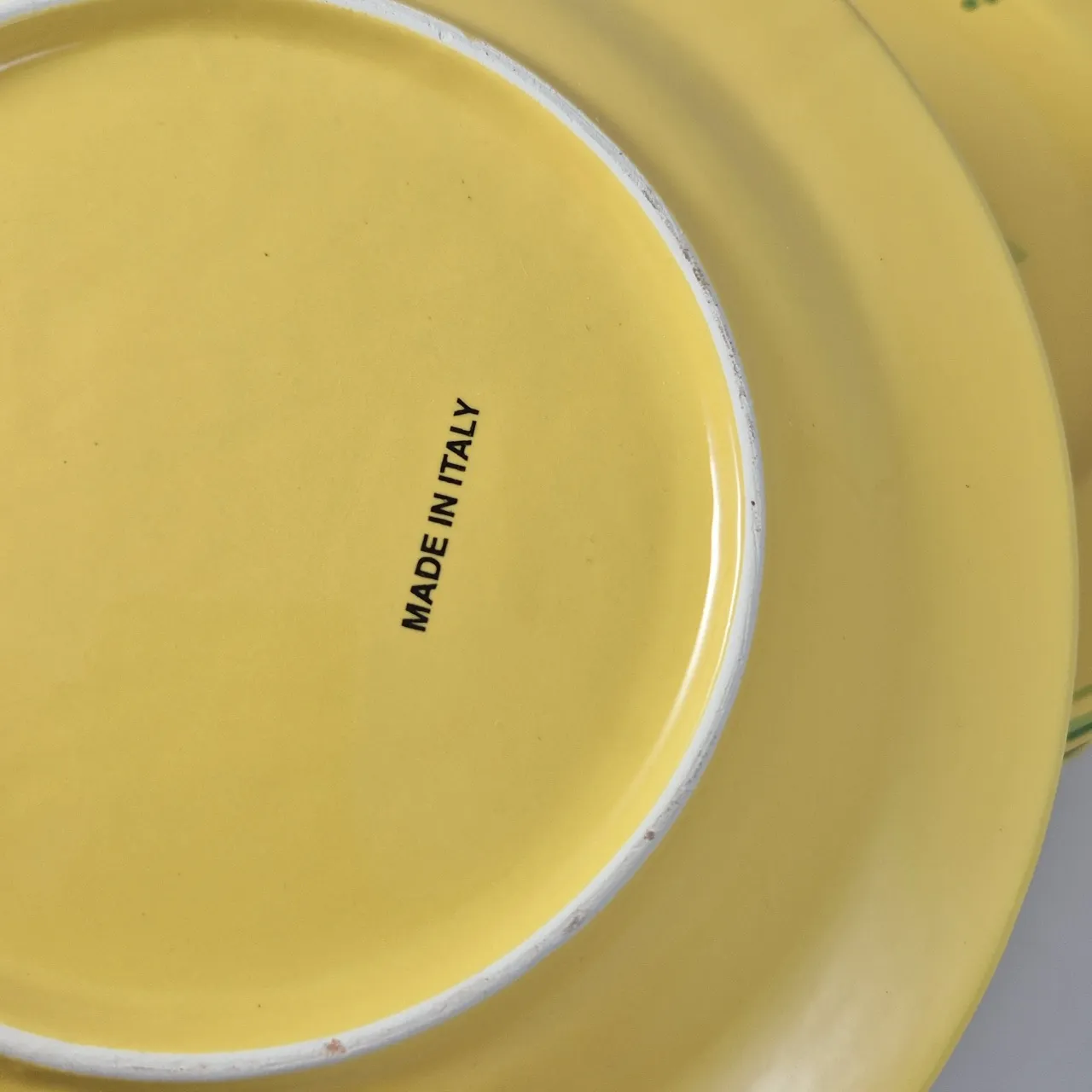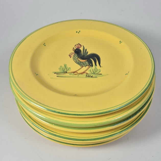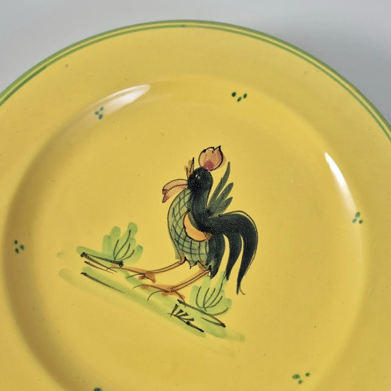 Italienska förrättstallrikar med tupp, knallgula! . Handmålade så det är samma men olika dekor. 6st. D.22cm