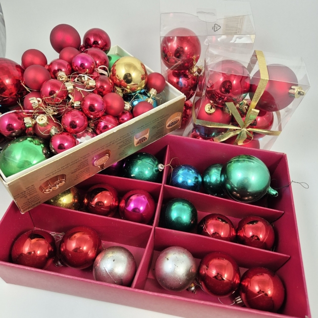 Julkulor i olika färger och storlekar