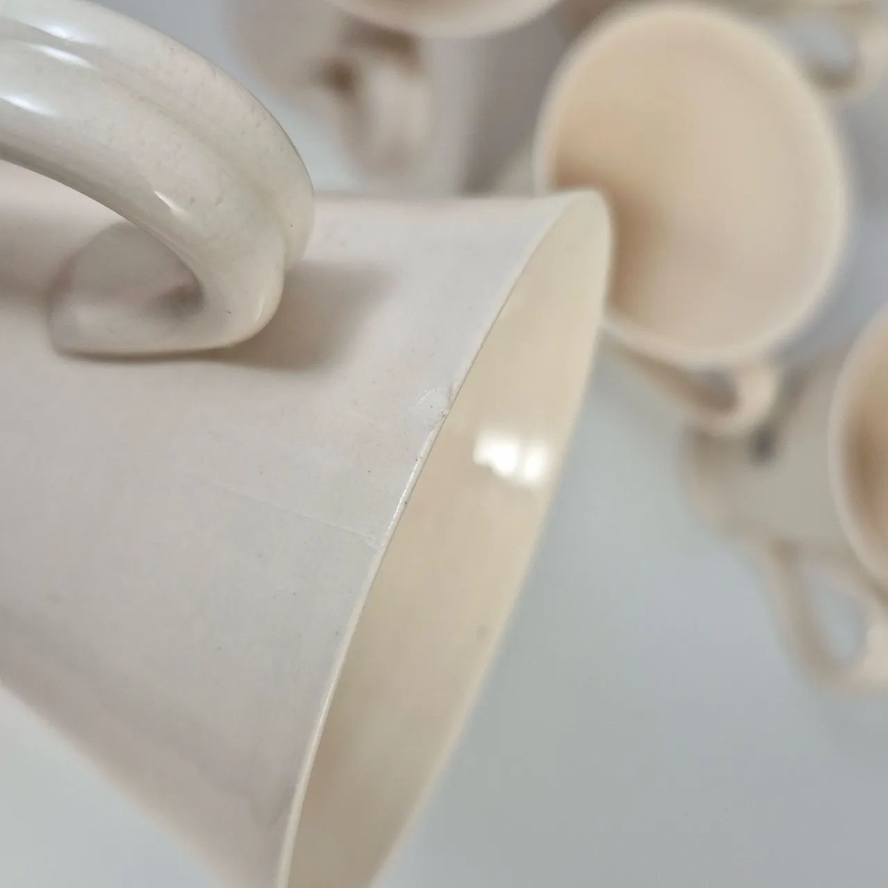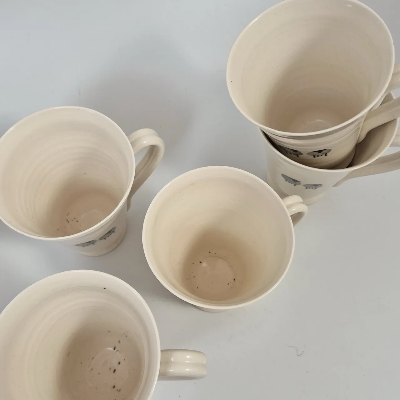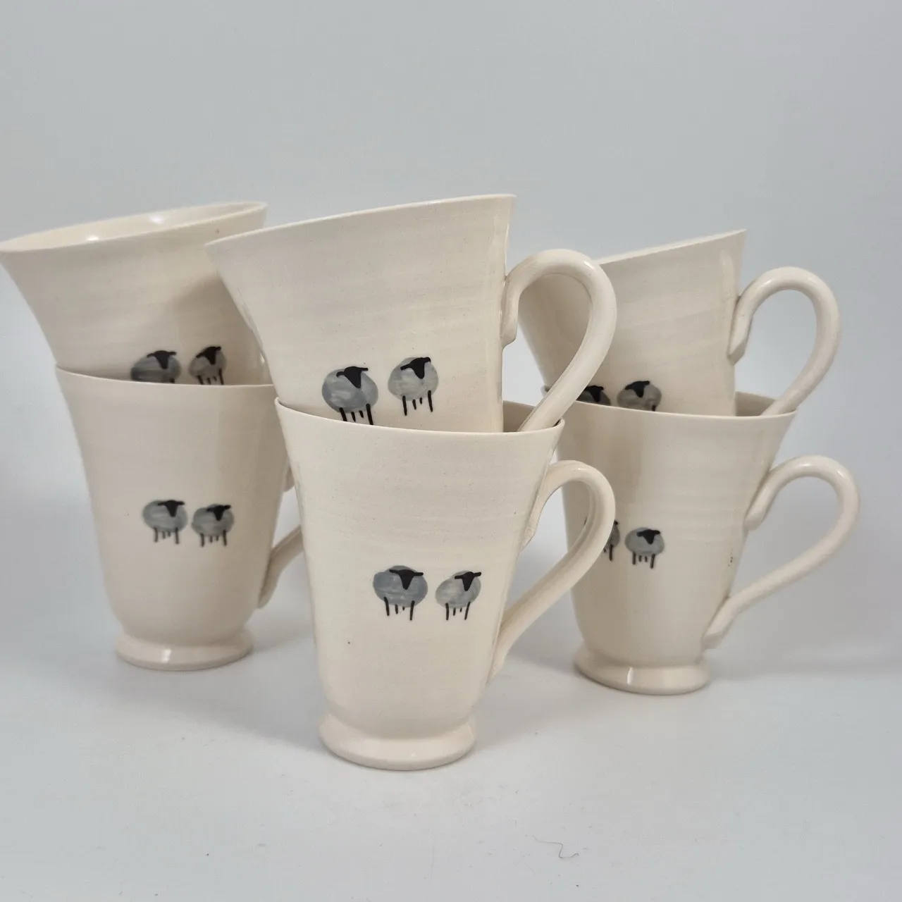 Kaffekoppar med får, Charlotte. 5st . En kopp har ett litet nagg . H.10.5cm . Obs! Det är alltså inte 6st som på bilden