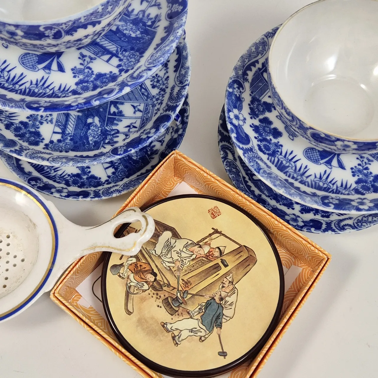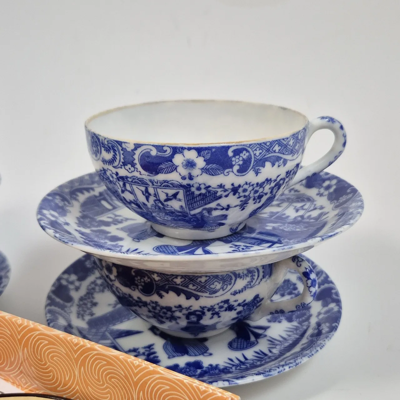 Kaffekoppar med fat, tunna . 5st (en har spricka)
