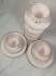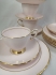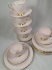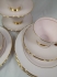 Urgulliga kaffekoppar med fat i ljusrosa med guldiga kanter