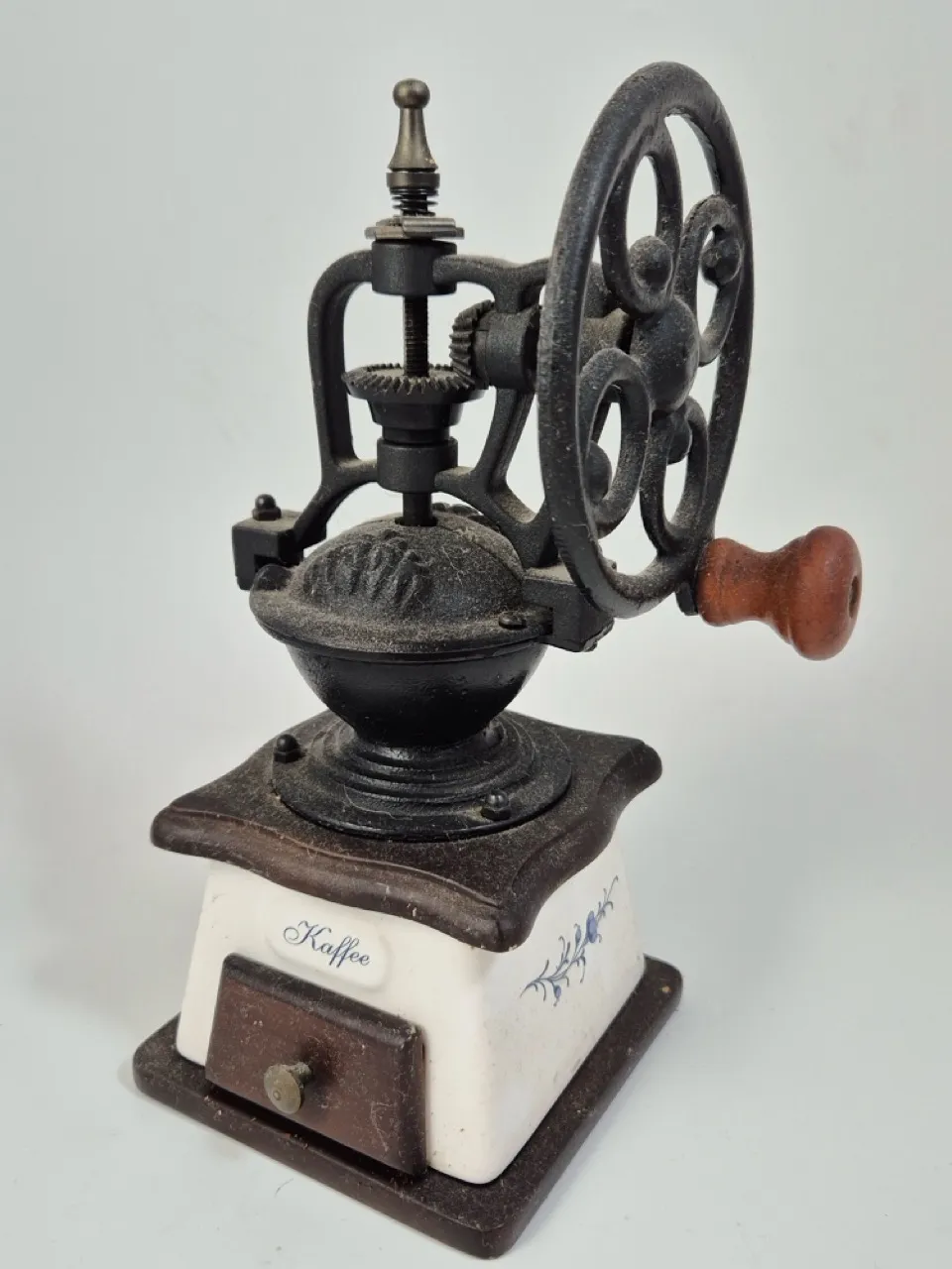 Kaffekvarn i gjutjärn och porslin . H. 25.5cm