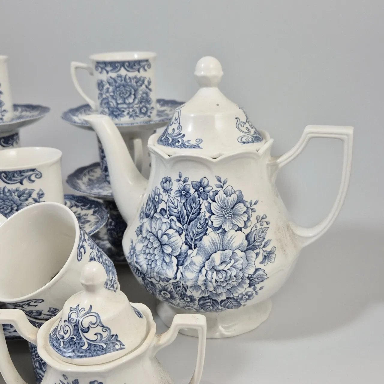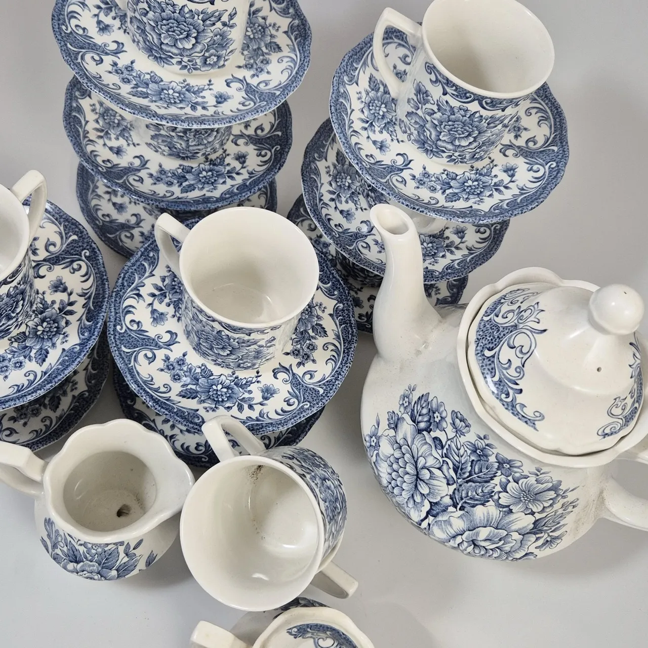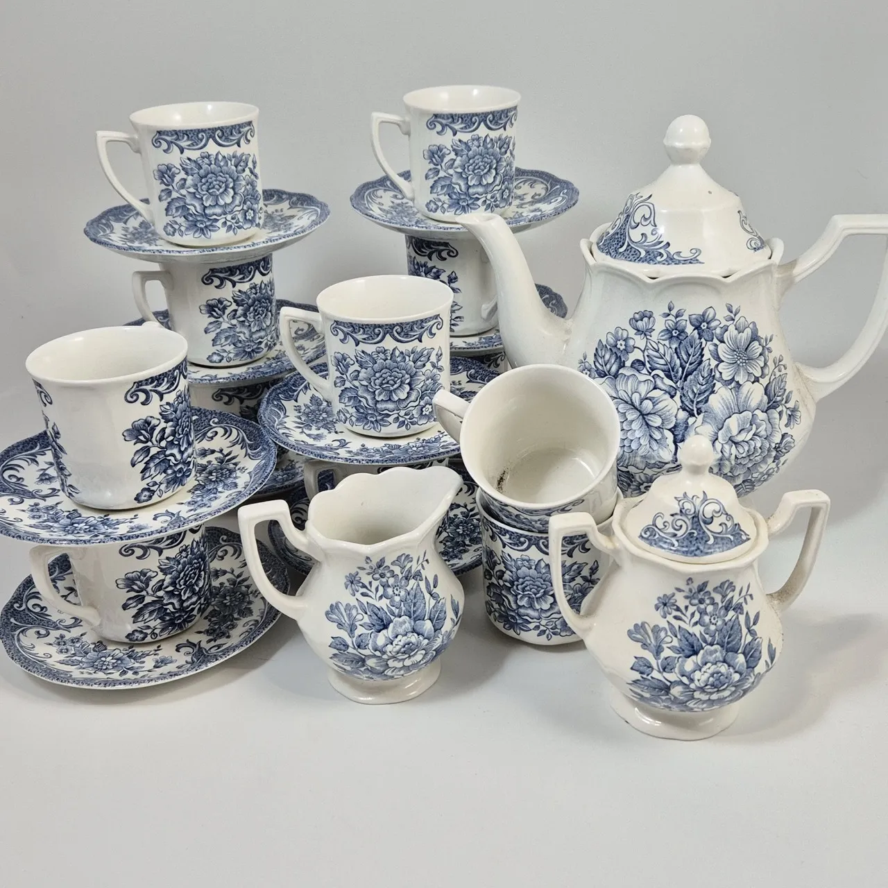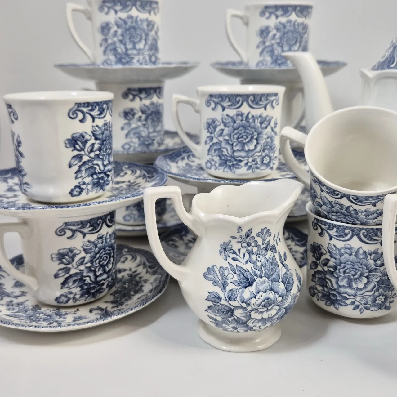10st koppar med fat + 2st koppar. Kaffekanna, gräddkanna, sockerskål