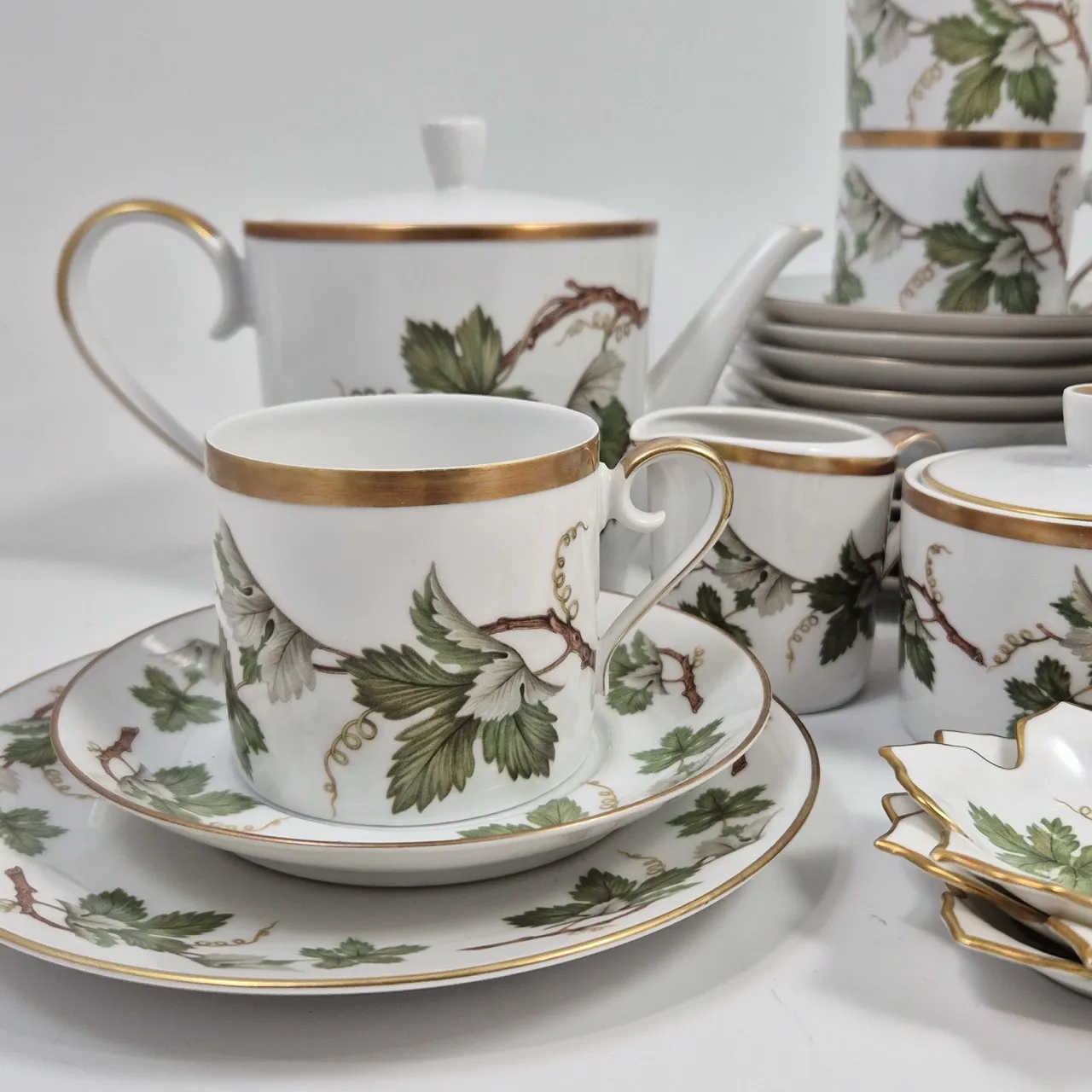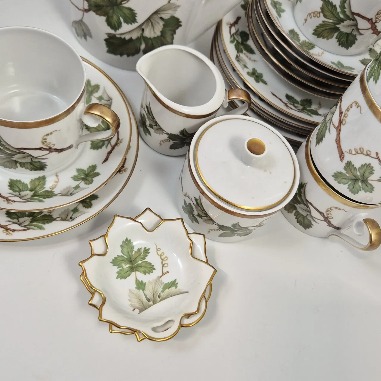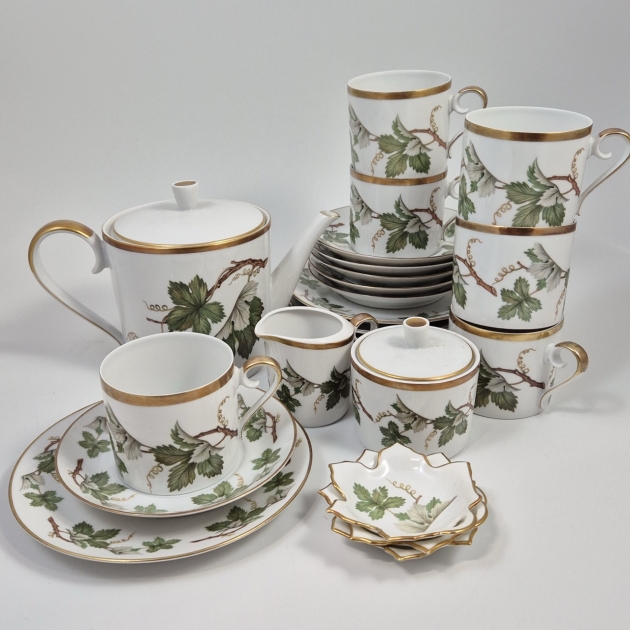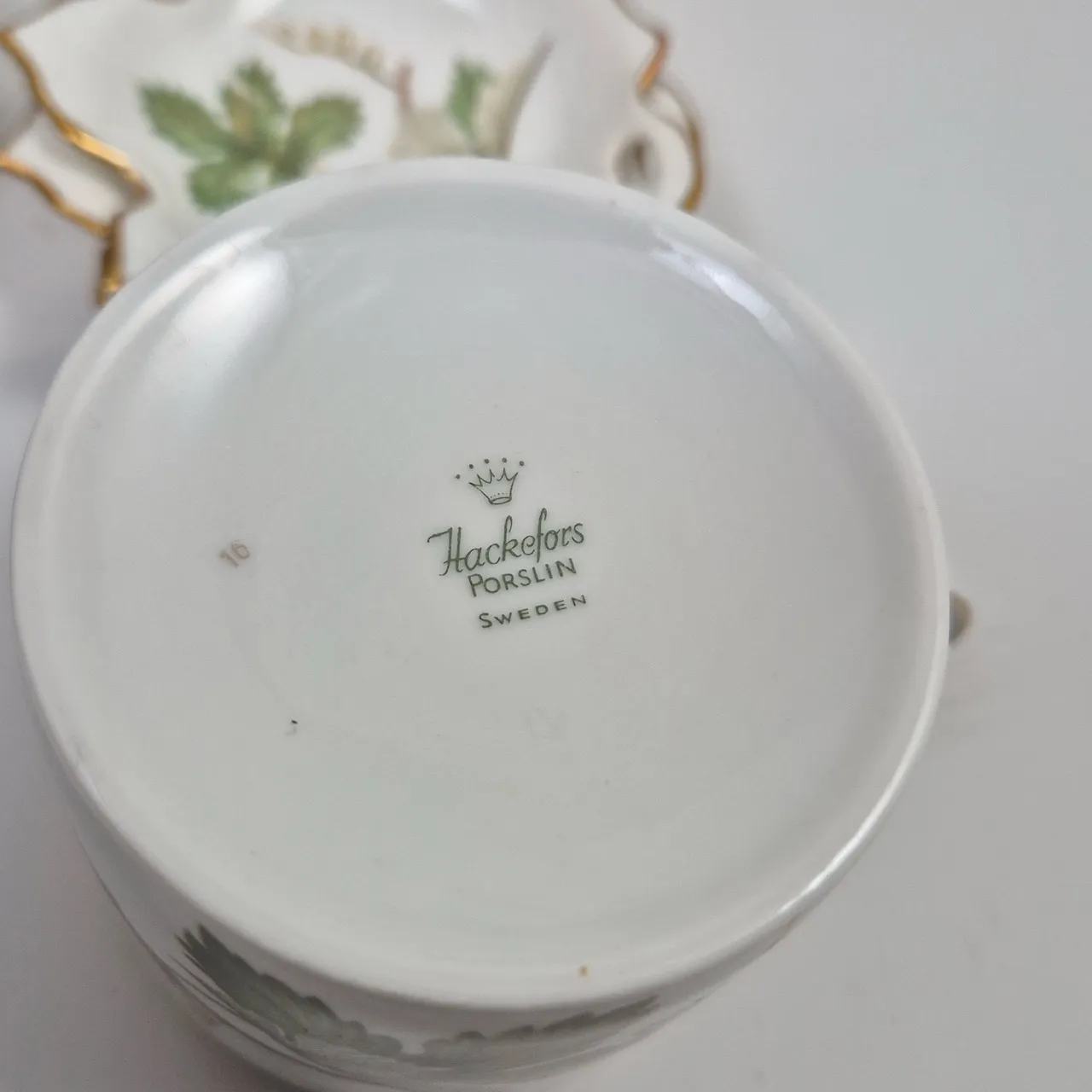 Kaffekanna, Gräddkanna, sockerskål, 6st Assietter, 6st koppar med fat . 3st små tepåsfat
