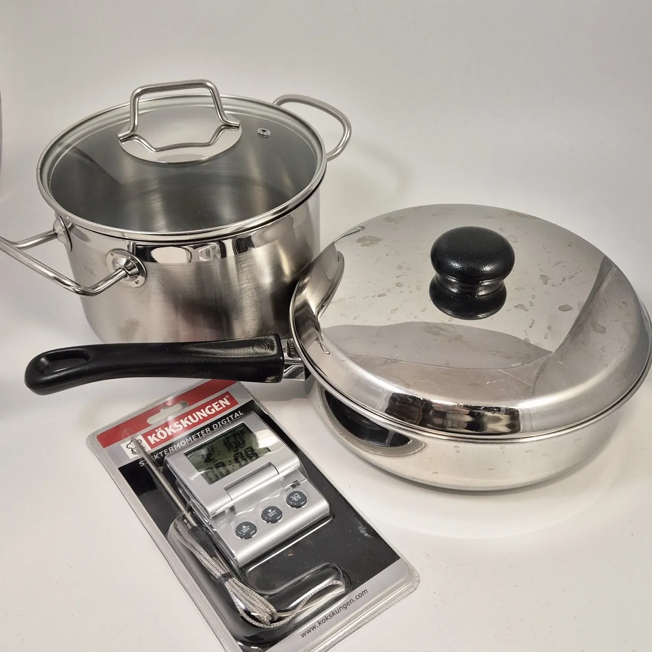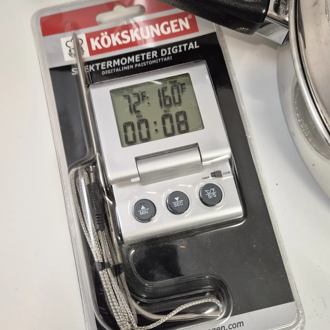 Ny termometer , kastrull 4liter induktion, traktörpanna ej induktion.
