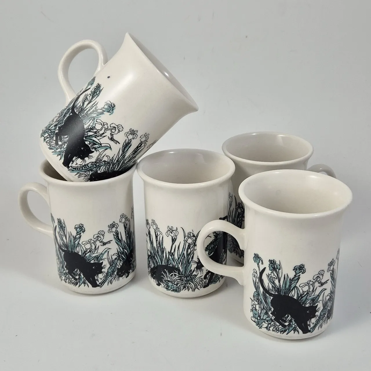 5st Kattmuggar H.10.5cm. Finns missfärgningar inuti