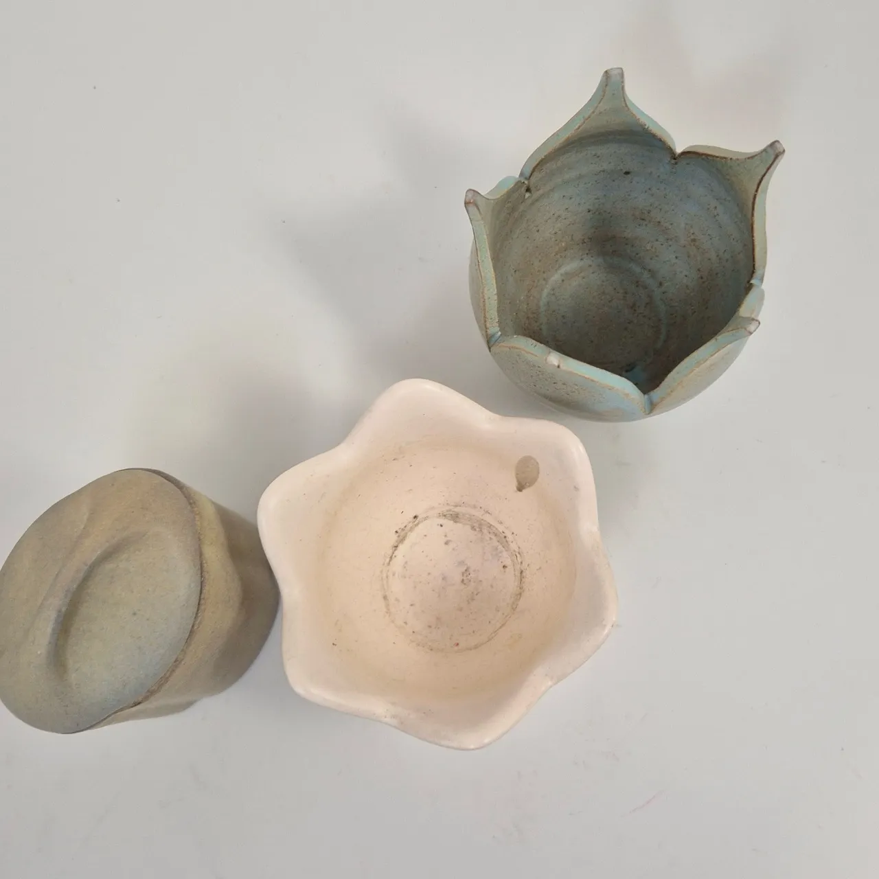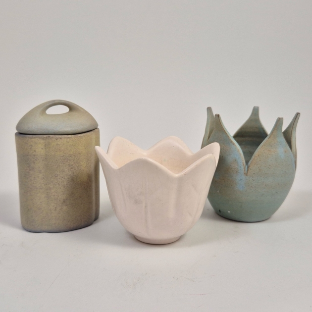 Burk i keramik H. ca 9cm , 2st små krukor /vaser