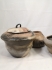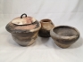 Keramikburk , skador i godset runt knoppen, höjd 12cm