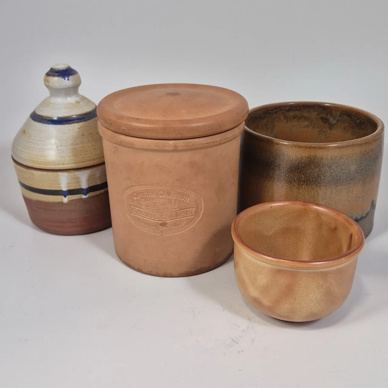 Vitlöksgömma keramik H.12.5cm , keramikburk, 2st olika krukor