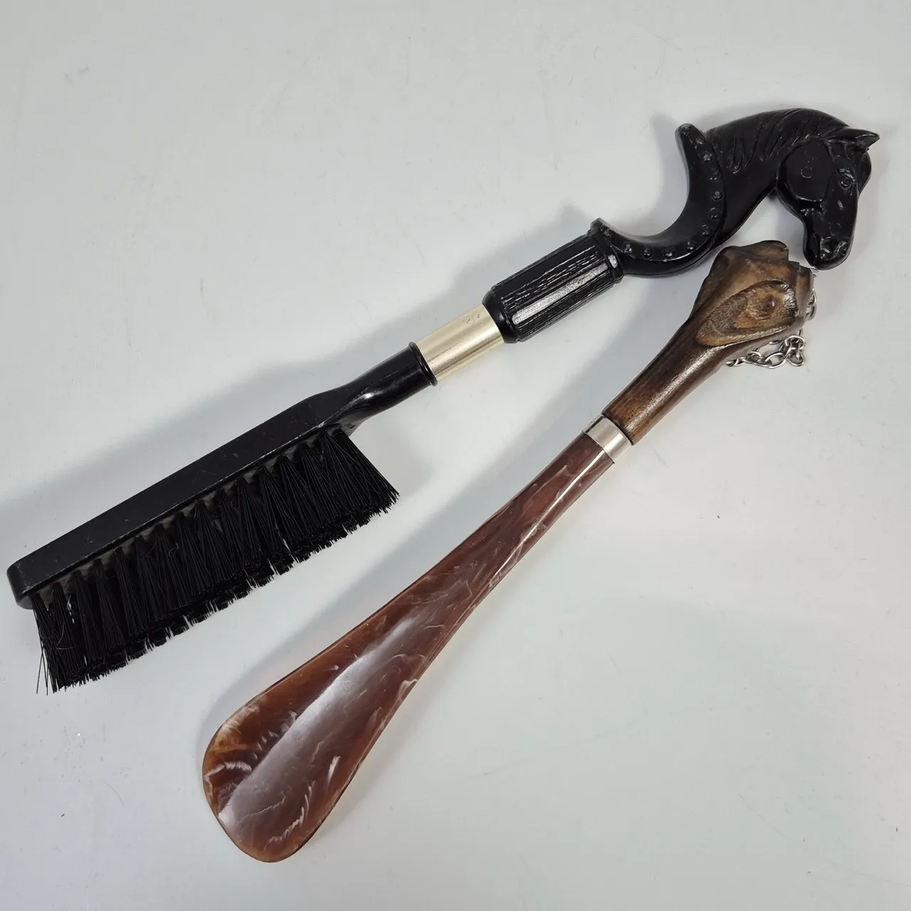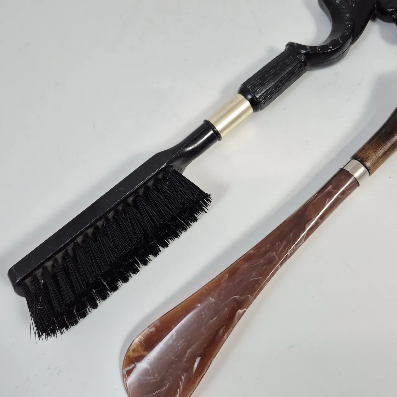 Klädborste och skohorn . Båda är i plast