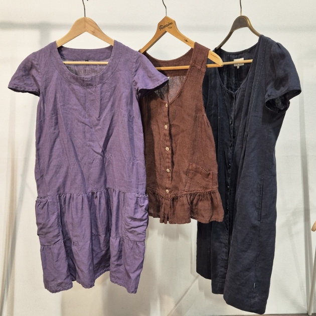 2st klänningar linne, 1st blus . Alla har fickor