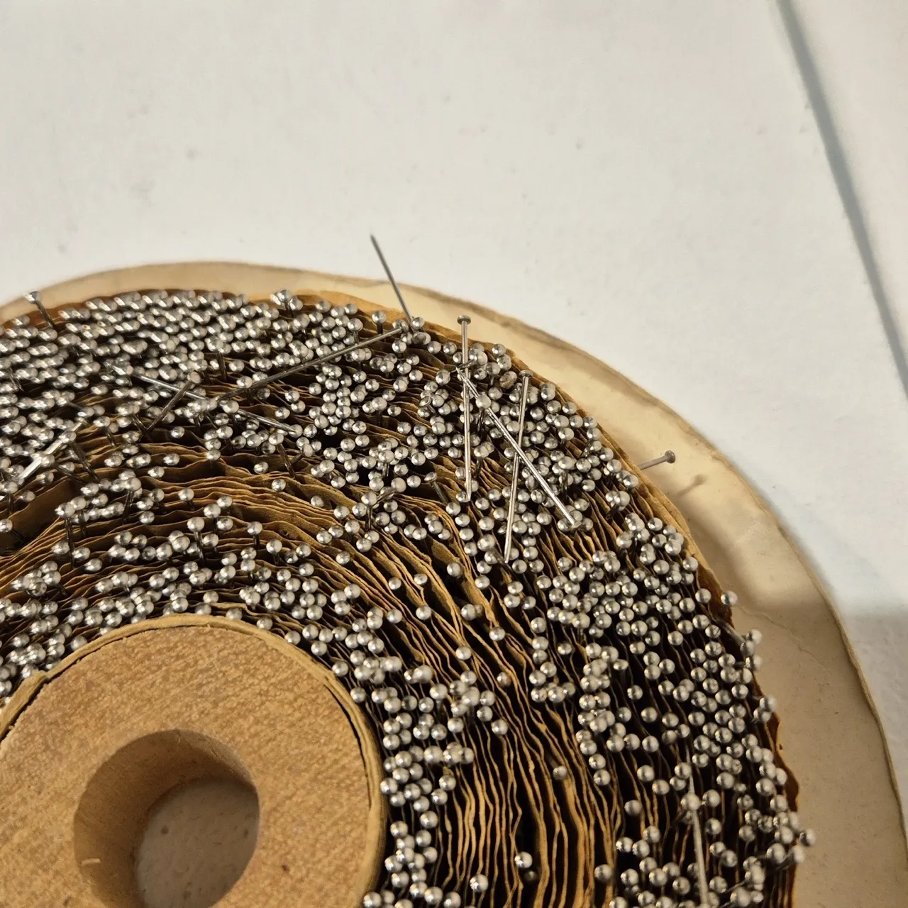 Knappnålar på rulle . En nål är ca 2.5cm lång.