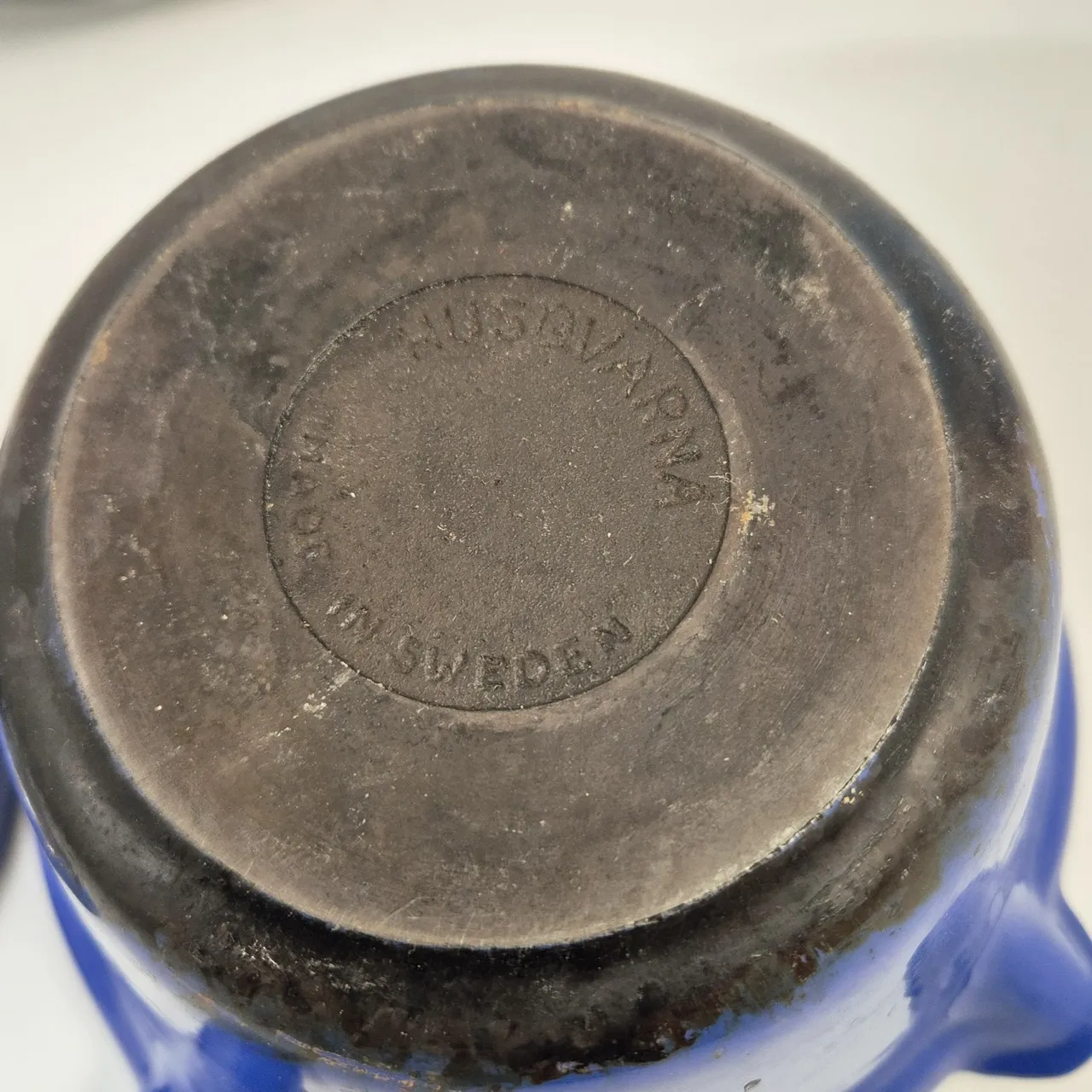 Emaljerad gjutjärns gryta Husqvarna. Repor inuti, nagg krackityr