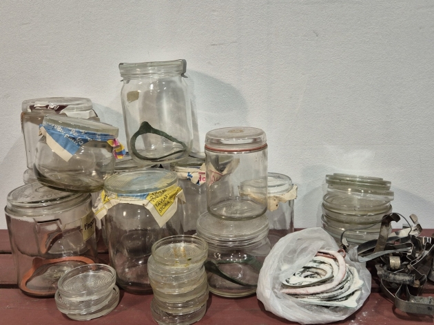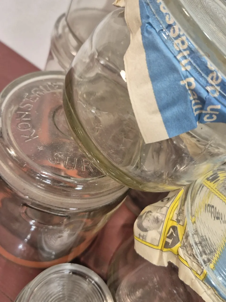 Konserveringsburkar i olika storlekar, extra gummipackningar, lock och byglar