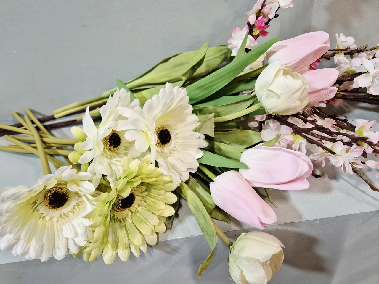2st långa körsbärsgrenar L.120cm , Tulpaner, Gerbera